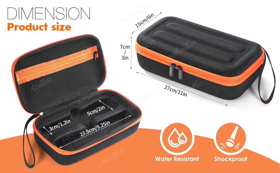 Diseño completamente ajustado: el diseño de ranura completamente ajustado puede fijar de forma segura y firme el micrófono inalámbrico en su lugar, evitar la fricción y la colisión y brindar protección durante el transporte.Szkoston