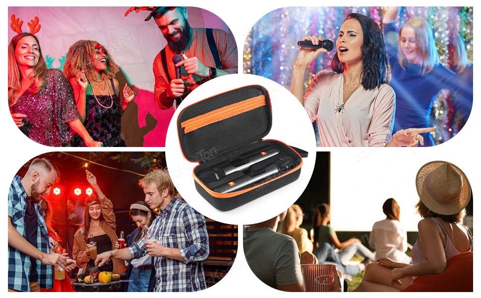 Portátil: el estuche de viaje con almacenamiento para micrófono inalámbrico está equipado con un asa cómoda, compacta y portátil, puede optar por llevarlo en la mano o guardarlo en su mochila o maleta. El estuche de transporte para micrófono cantante es una opción ideal para familiares y amigos que aman la música.