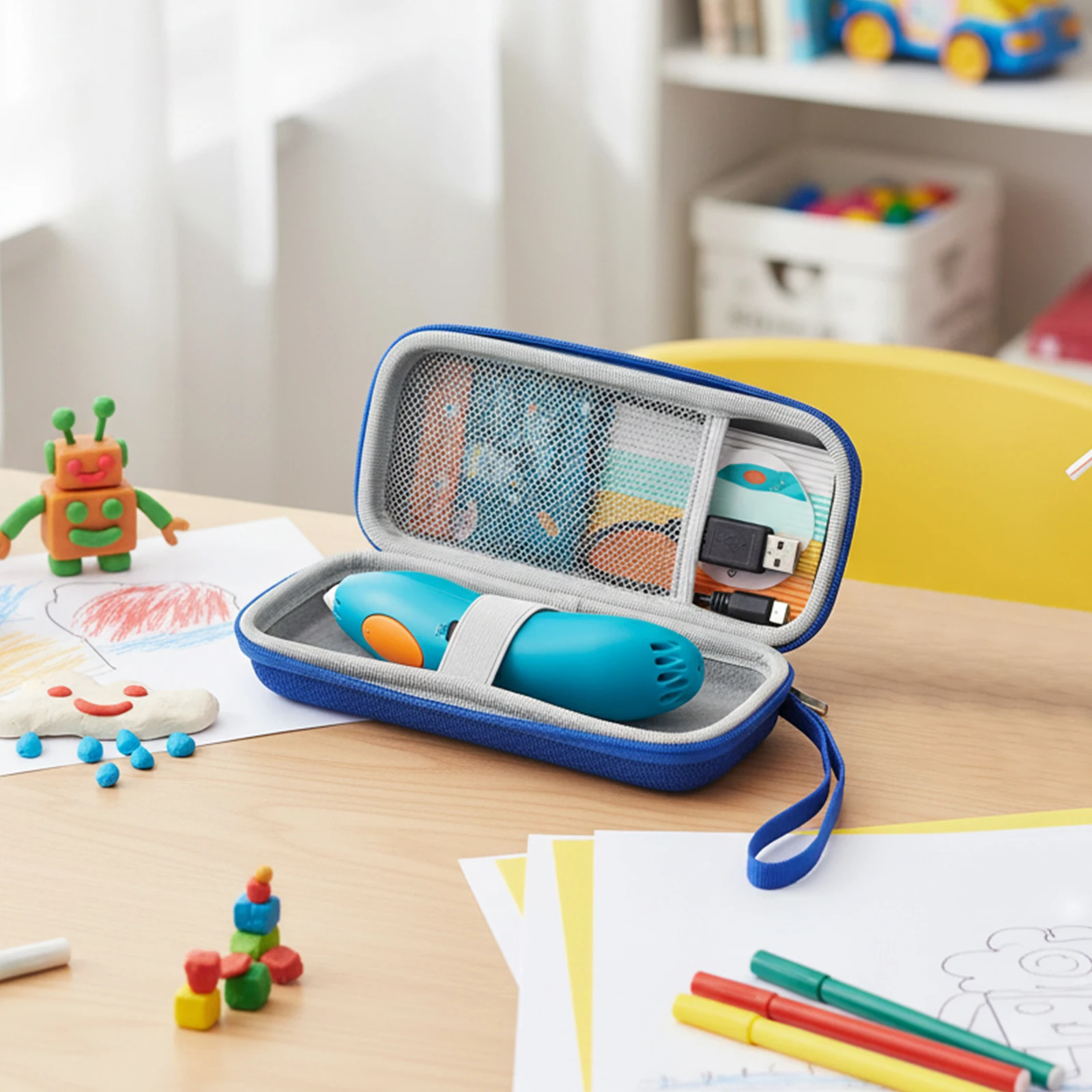 5. Transporte conveniente mientras viaja:Equipado con una cremallera resistente y una muñequera suave, este estuche de transporte es ideal para los viajes diarios.Proteja sus bolígrafos y suministros 3D en ruta a la escuela, el estudio o los talleres con una protección diaria liviana y confiable.