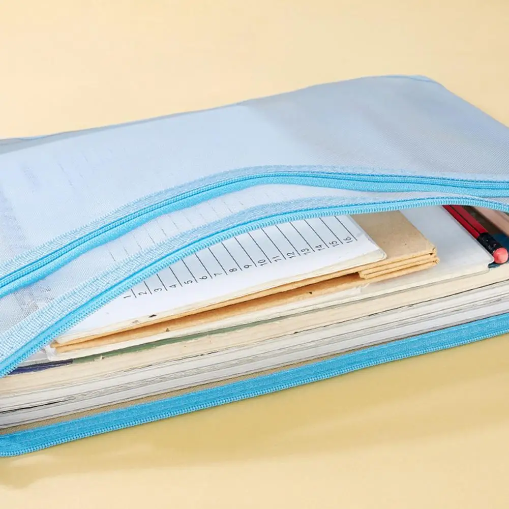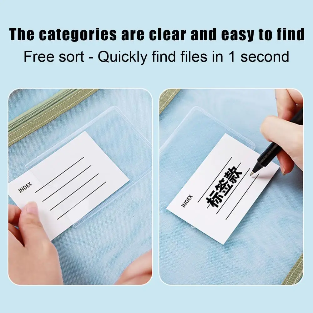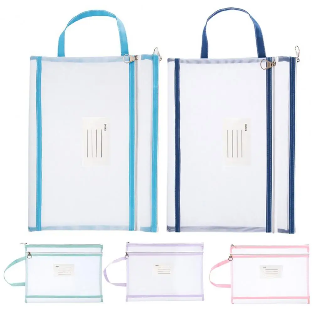 Bolsa de almacenamiento portátil para archivos con cierre de cremallera de cordón para documentos A4, soporte organizador de archivos transparente con capacidad