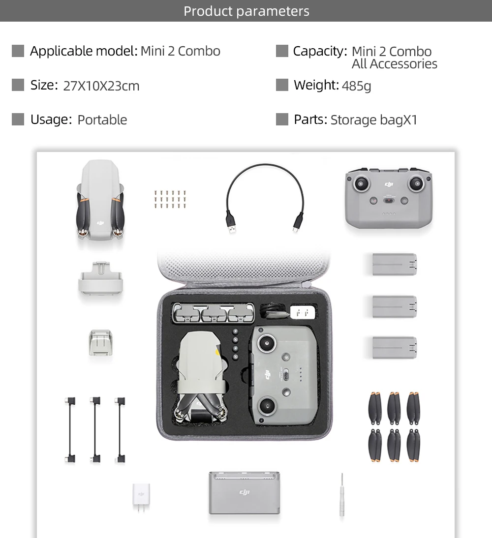Comprar Bolsa de almacenamiento portátil para DJI Mavic Mini 2, estuche de transporte al aire libre para DJI mini 2, accesorios de batería y controlador