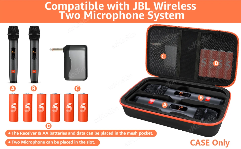 [Compatible con funda de micrófonos inalámbricos]-Diseñado específicamente para el sistema de dos micrófonos inalámbricos JBL, nuestra bolsa de almacenamiento de Micrófono dual ofrece espacios separados para dos micrófonos, baterías AA y cables de datos. Es perfecto para músicos, altavoces y amantes de la música que necesitan proteger su equipo cuando están en movimiento. Nota: solo una funda, no incluye otros accesorios.