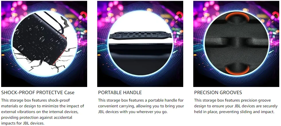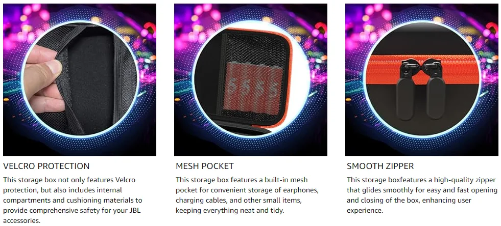 [Ligero y portátil]-Nuestra bolsa de transporte para la máquina de karaoke JBL con 2 micrófonos incluye dos bolsillos de malla, cada uno sujeto con cinta mágica para el almacenamiento seguro de receptores inalámbricos, adaptadores, baterías AA, cables de datos y otros accesorios. Este diseño es particularmente útil para las personas que necesitan llevar equipos adicionales para un uso prolongado, como organizadores de eventos y técnicos de sonido. Dimensiones externas: 11*6*3,25 pulgadas