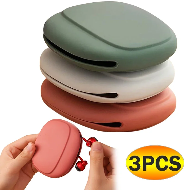 Bolsa de almacenamiento de silicona para auriculares con Cable, estuche protector portátil para Cable de datos de viaje, monedas de Color puro, bolsa para el hogar y la Oficina, 3/1 piezas
