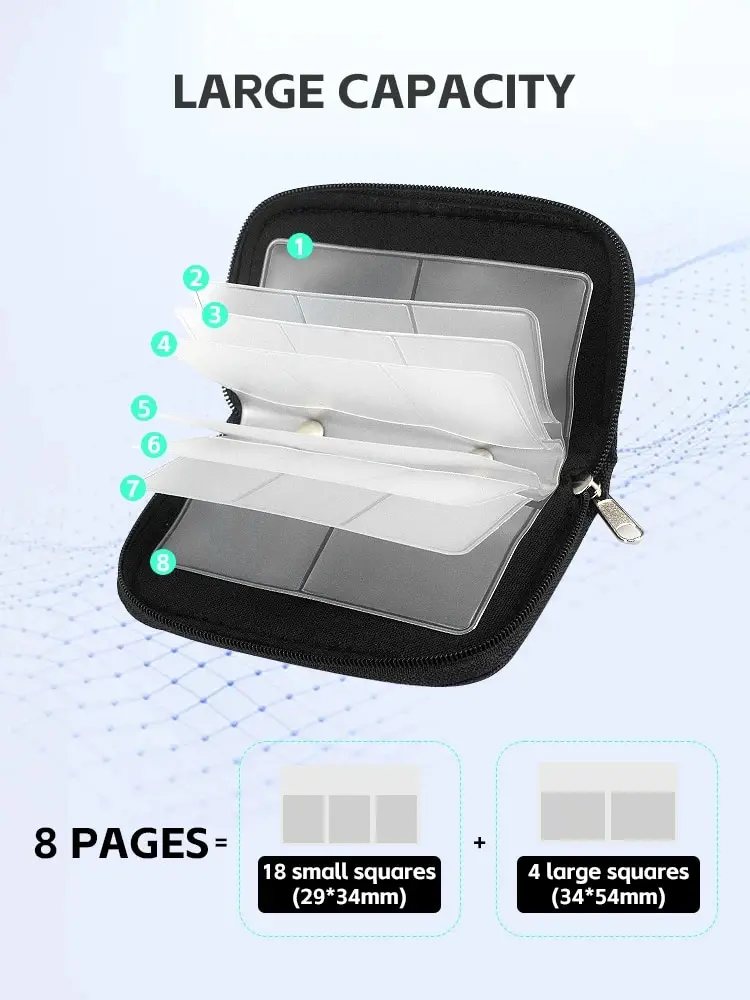 Total de 8 bolsa esmerilada semitransparente, con capacidad para un total de 22 compartimentos para tarjetas