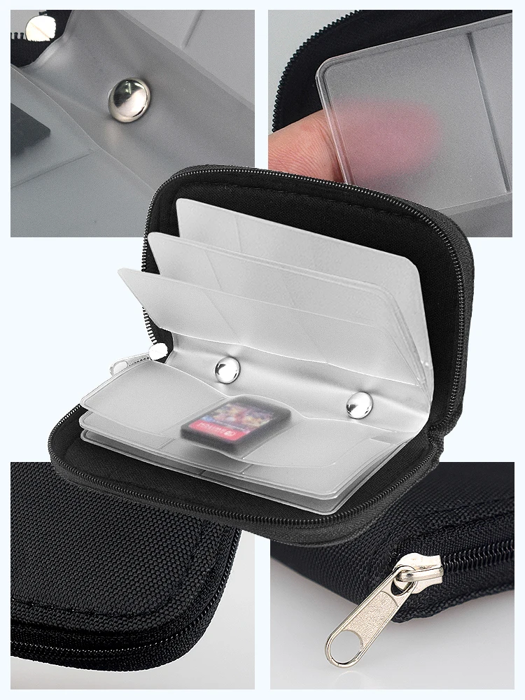 • Duradero y protector:La bolsa de almacenamiento de tarjetas de memoria está hecha de materiales de alta calidad que proporcionan una excelente protección contra arañazos, polvo y otros daños.