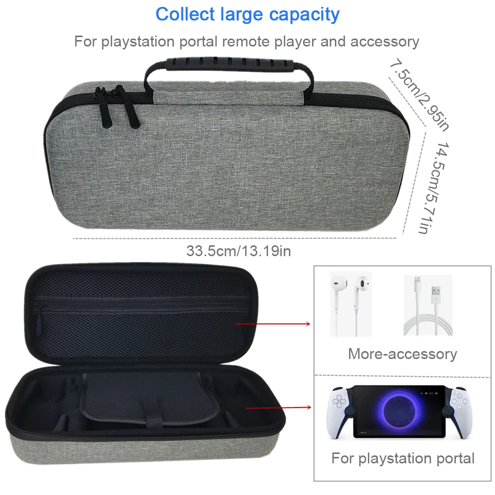 Característica:1. Diseño dedicado:El estuche rígido de transporte molde personalizado diseñado específicamente para el reproductor remoto Sony PlayStation Portal (para PS5 Portal), perfecto para viajes y juegos en movimiento. El elegante color gris muestra un diseño minimalista que ahorra espacio y es fácil de transportar. * No incluye la consola de juegos.