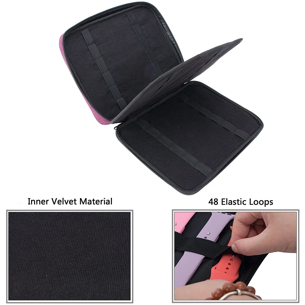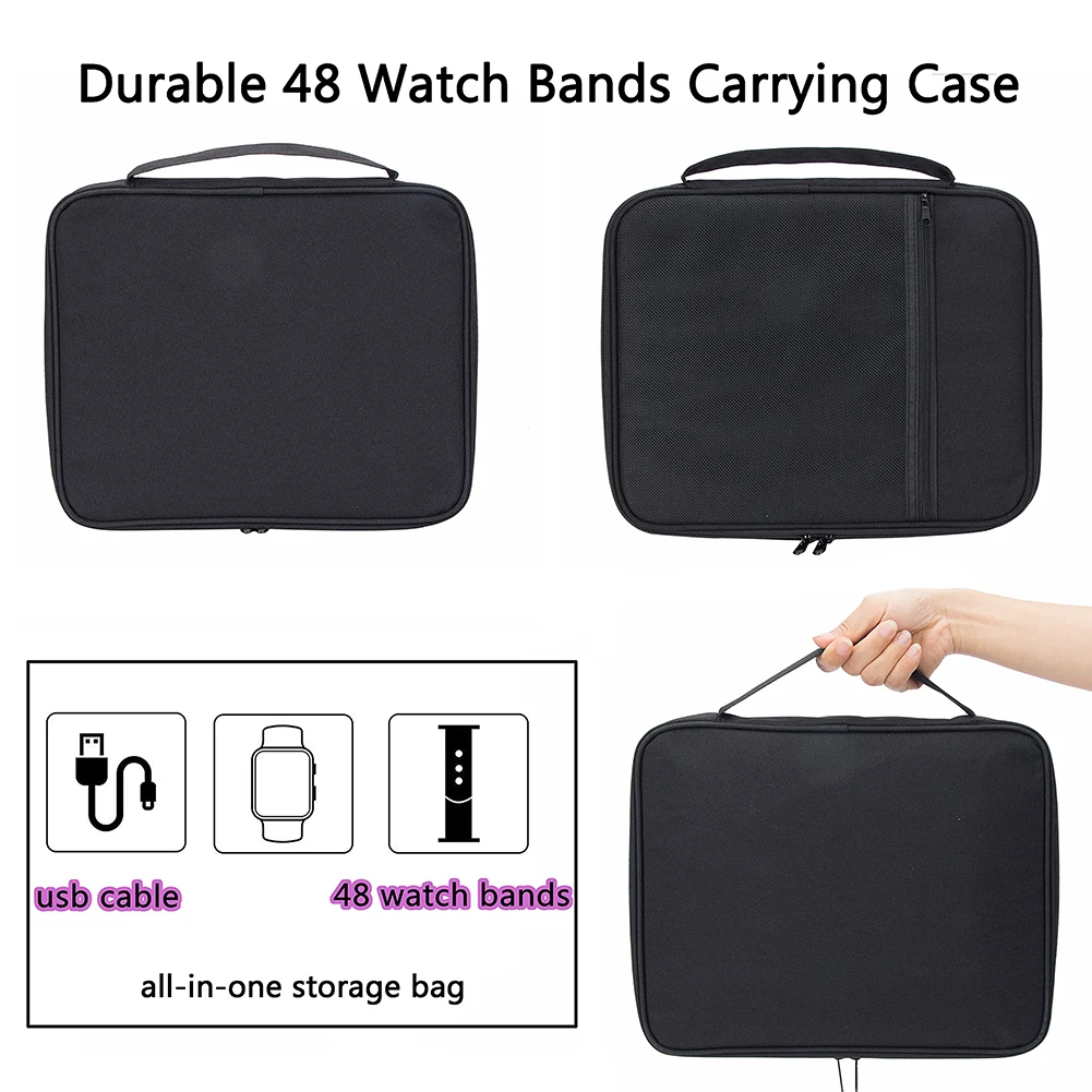 Bolsa de almacenamiento Universal para correa de reloj, bolsa de viaje portátil con 48 ranuras, caja organizadora de Cable de carga, estuche de transporte