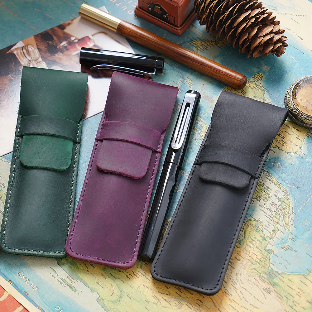 Estuche para Bolígrafos Hecho a Mano de Piel de Vaca, Estuche de Almacenamiento de Lápices Estilo Vintage para Diario, Suministros de Viaje, Retro
