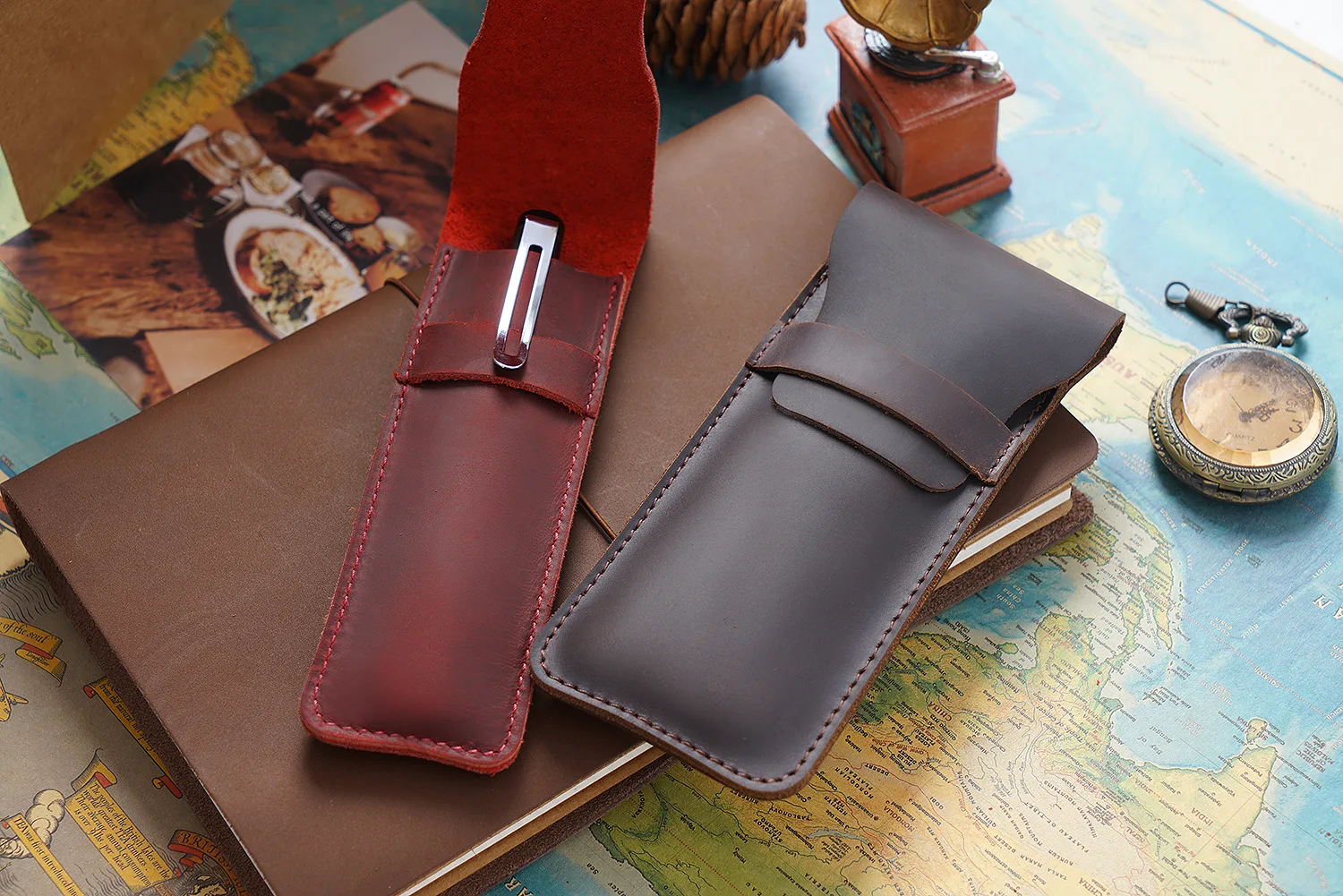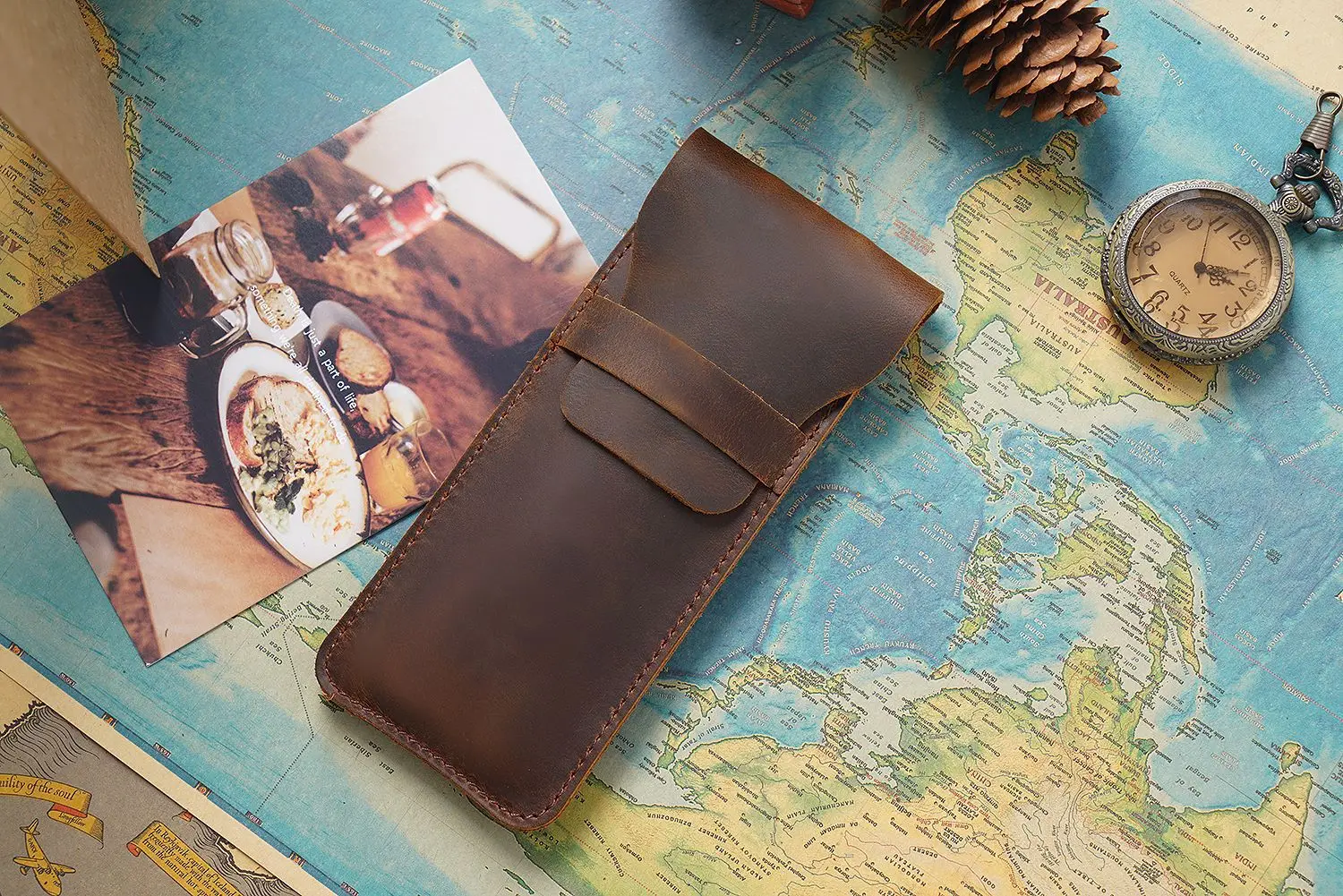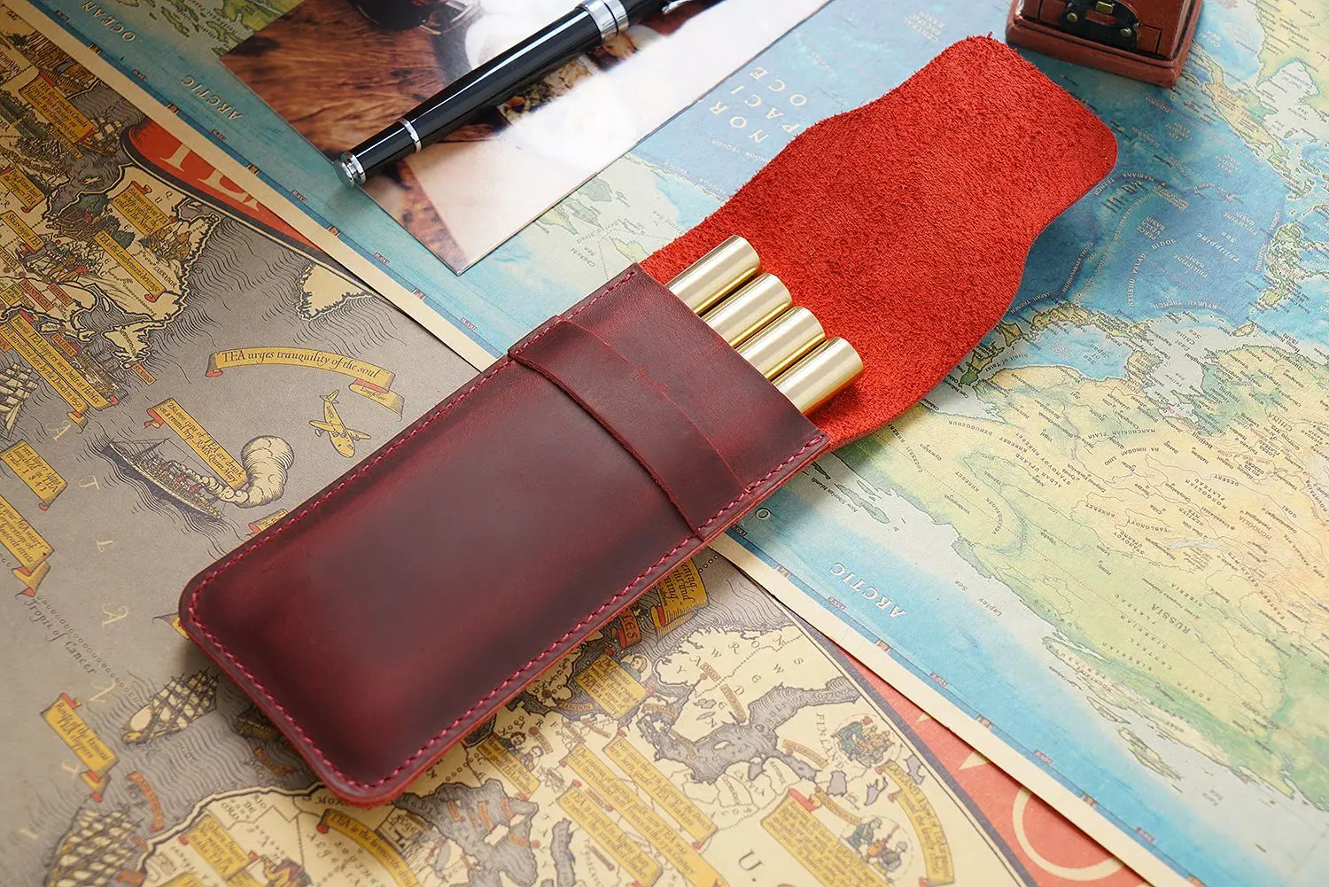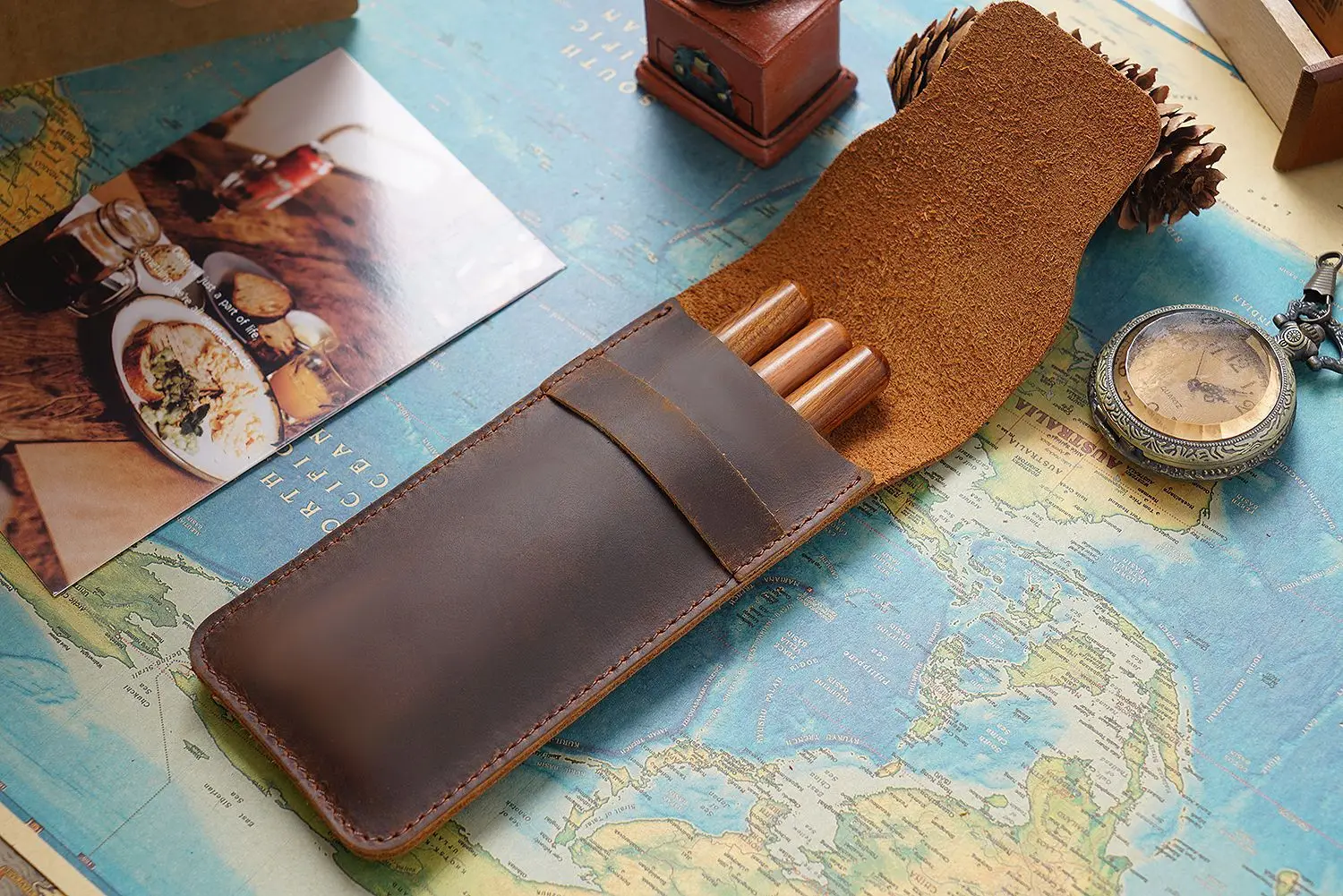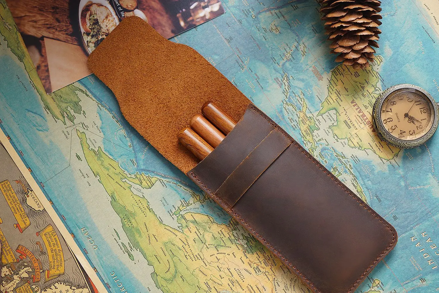 Estuche para Bolígrafos Hecho a Mano de Piel de Vaca, Estuche de Almacenamiento de Lápices Estilo Vintage para Diario, Suministros de Viaje, Retro
