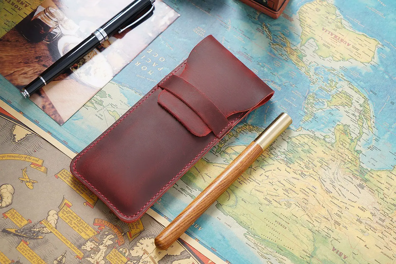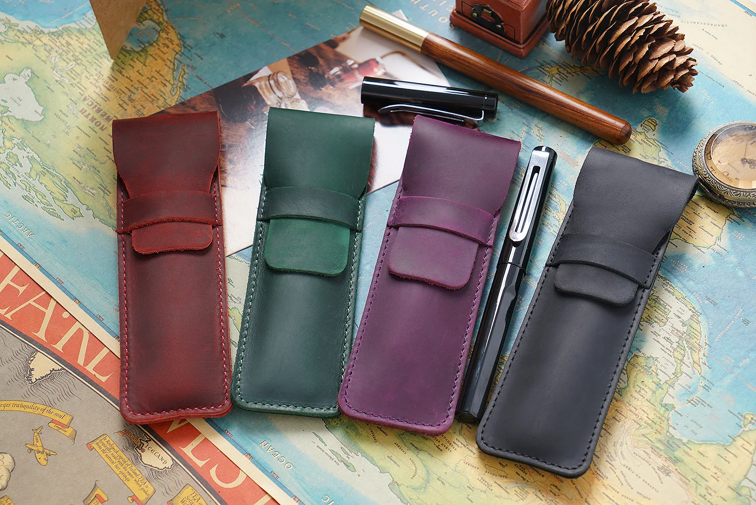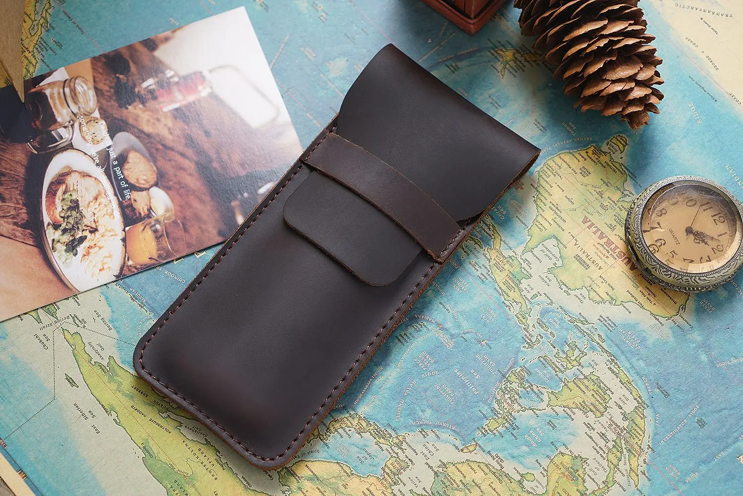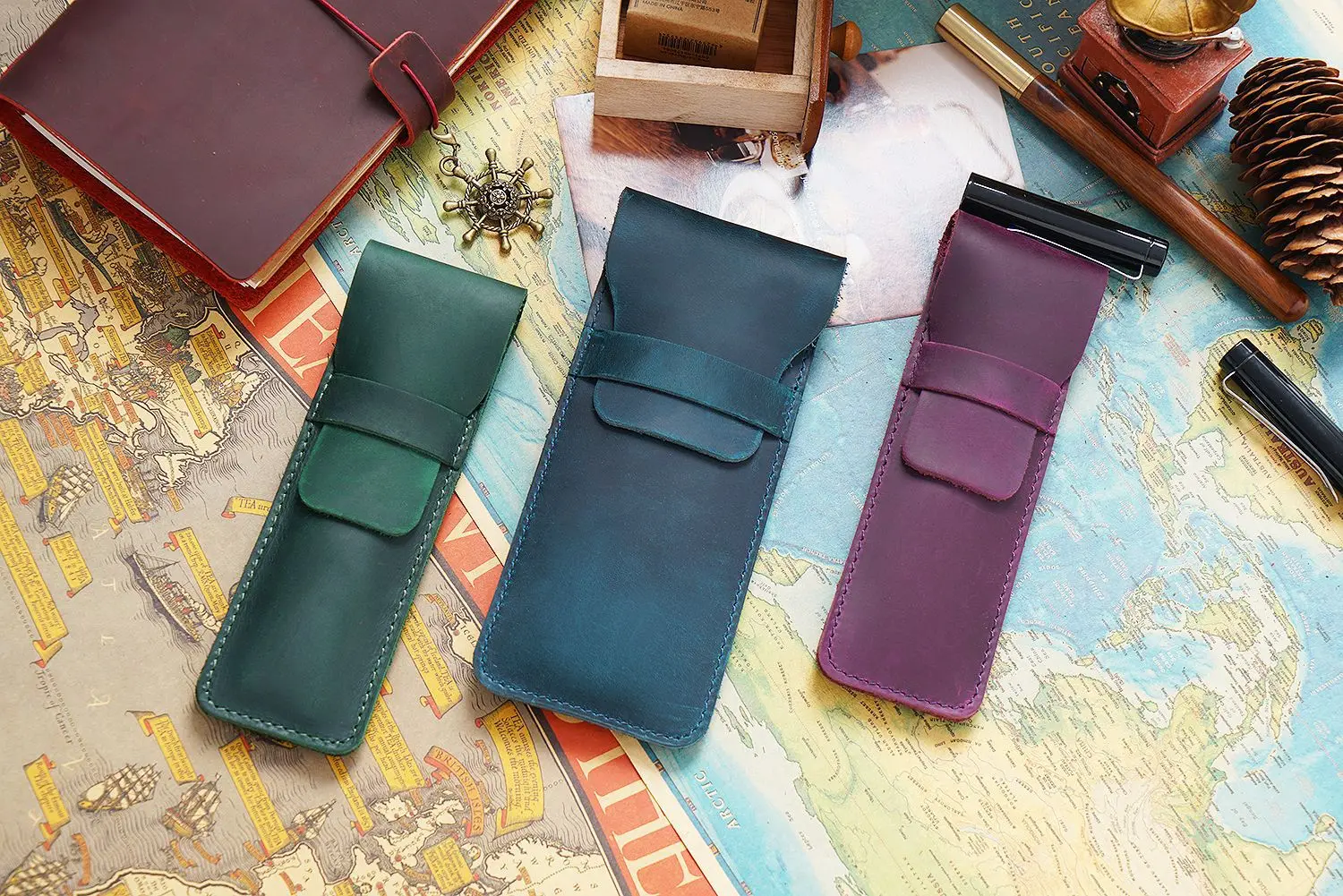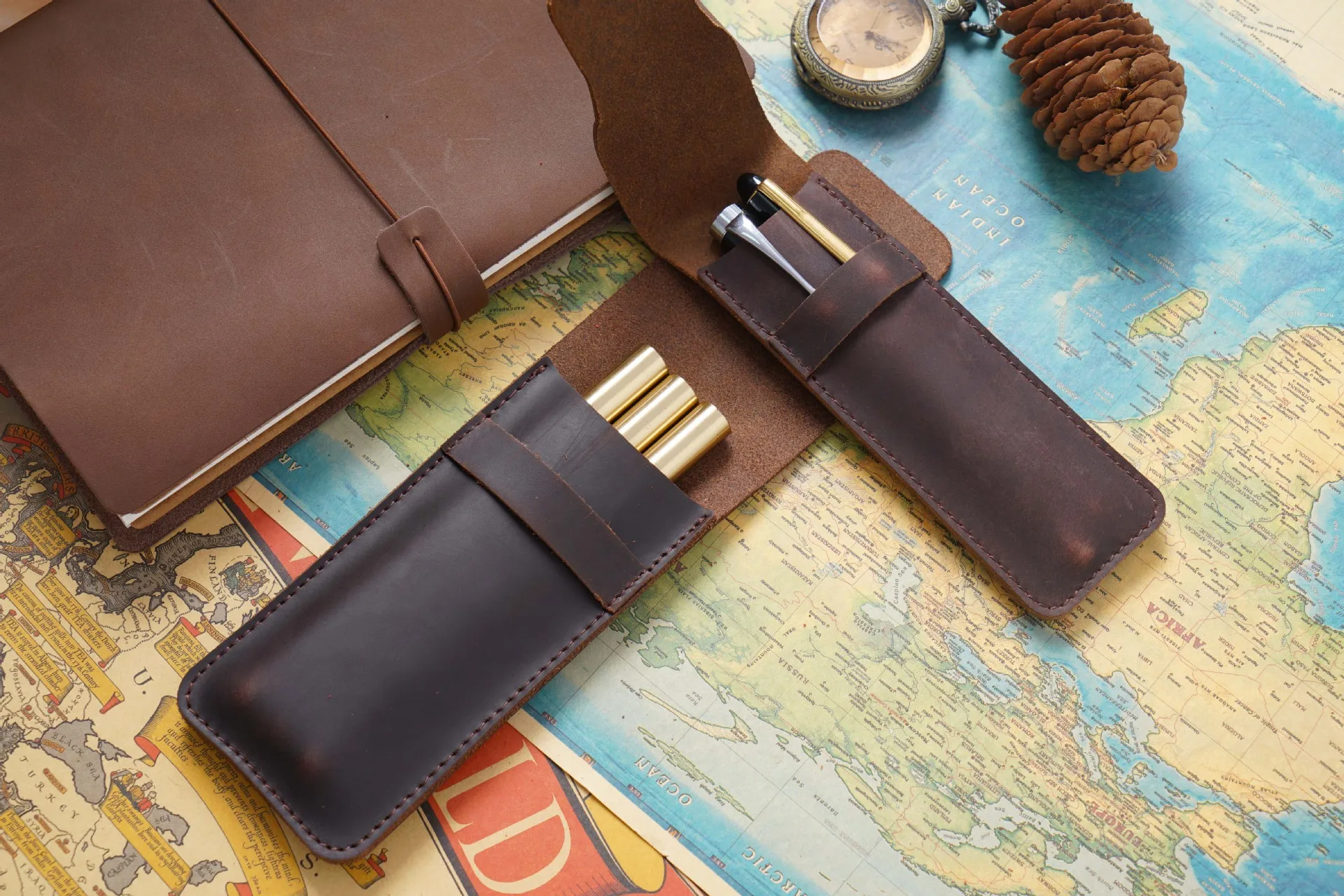 Estuche para Bolígrafos Hecho a Mano de Piel de Vaca, Estuche de Almacenamiento de Lápices Estilo Vintage para Diario, Suministros de Viaje, Retro
