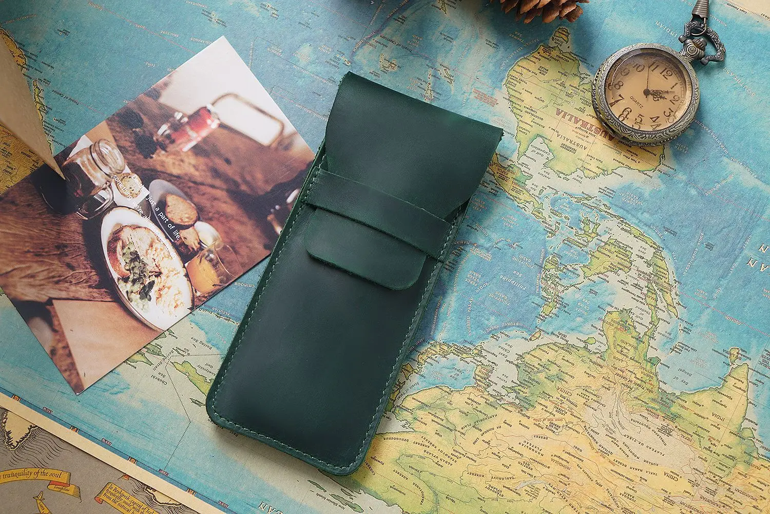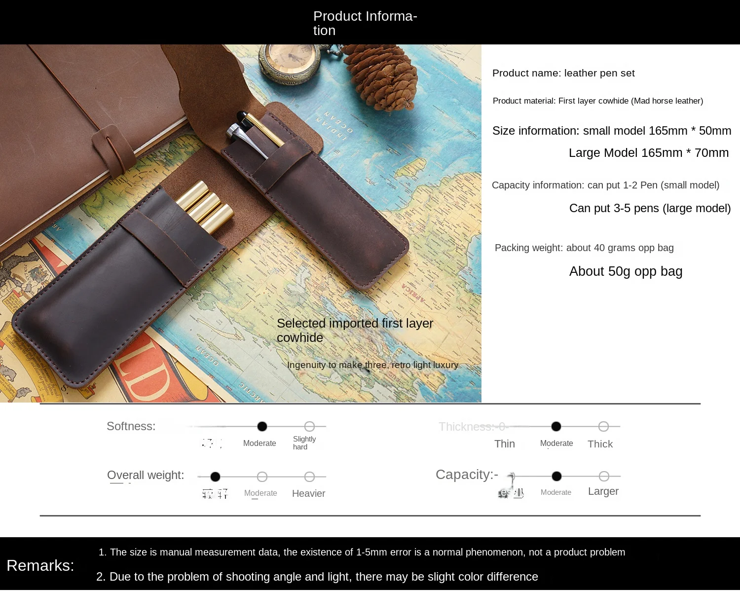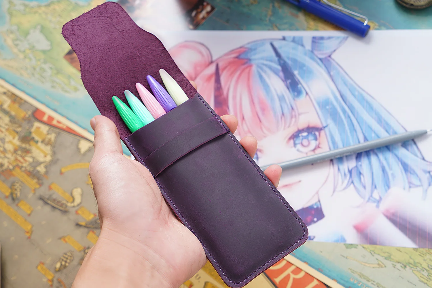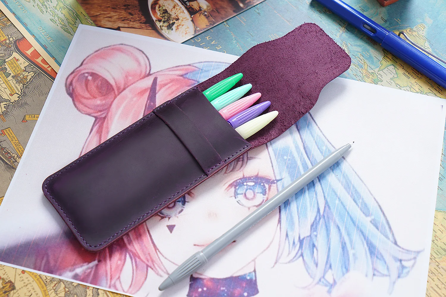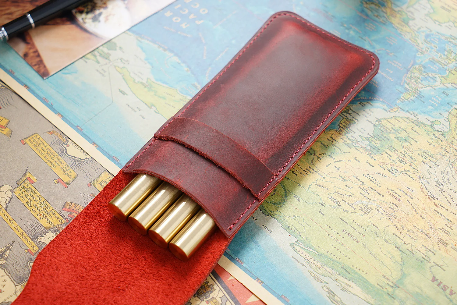 Estuche para Bolígrafos Hecho a Mano de Piel de Vaca, Estuche de Almacenamiento de Lápices Estilo Vintage para Diario, Suministros de Viaje, Retro