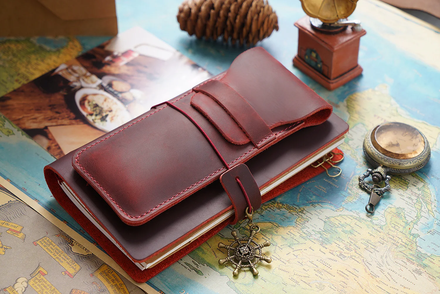 Comprar Bolsa de bolígrafo hecha a mano de cuero de vaca genuino, estuche de lápices de estilo Retro Vintage, almacenamiento para diario, suministros de viaje