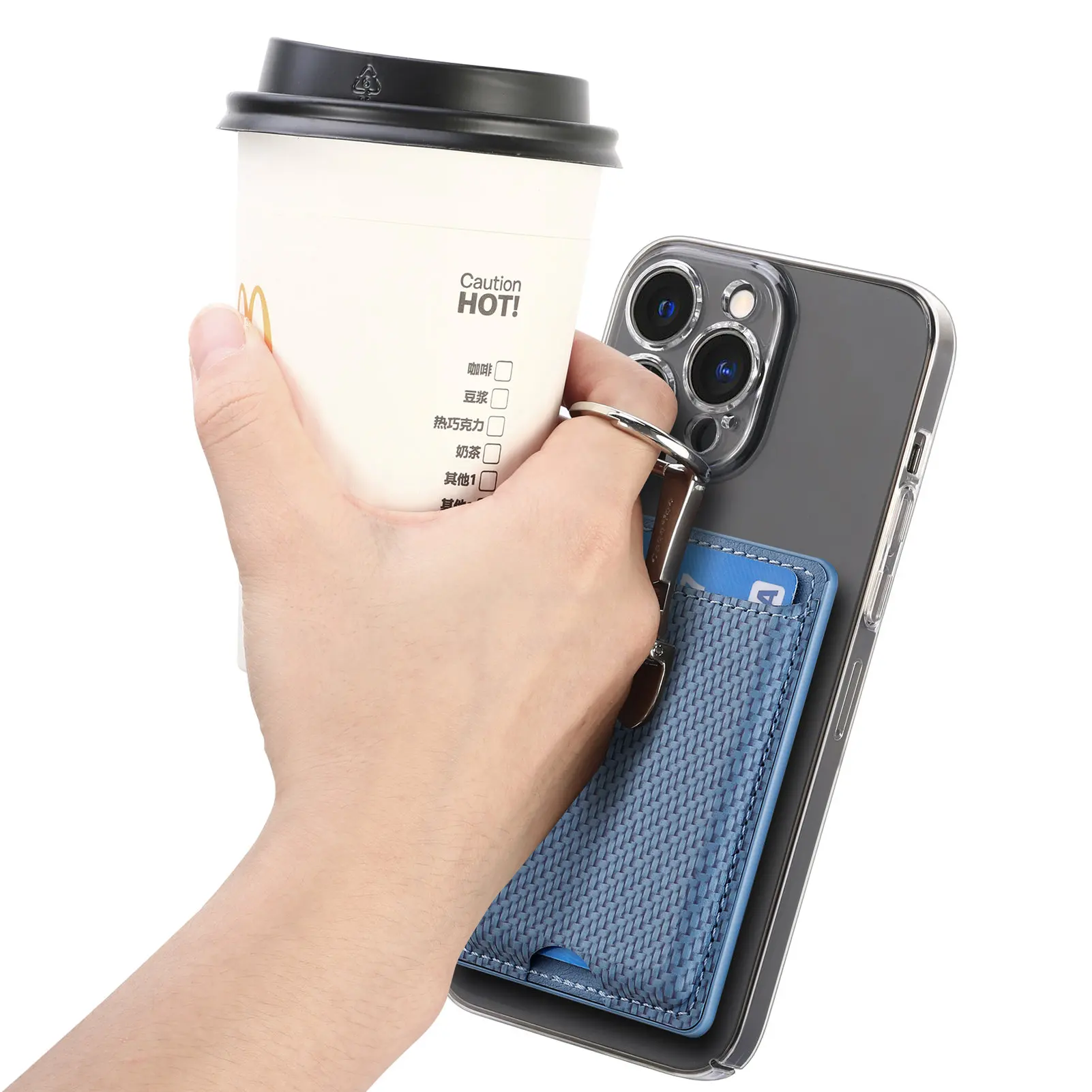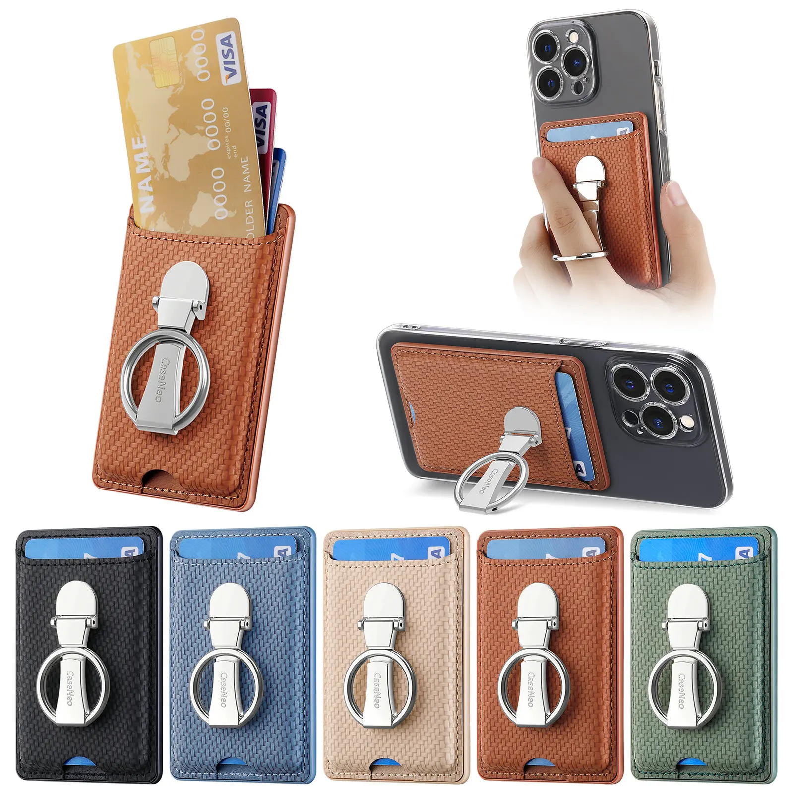 Adhesivo adhesivo tarjetero bolsa de bolsillo para IPhone 15 Pro Max teléfono móvil bolsa Universal teléfono móvil billetera soporte de anillo plegable