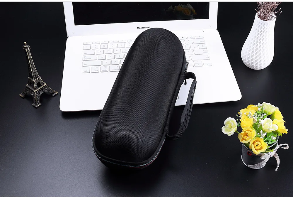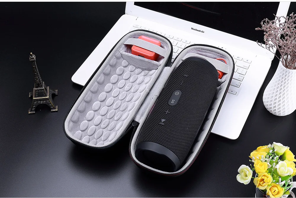 Desafortunadamente, la funda es una tragedia, ni siquiera voy a publicar fotos, es como si la hubieran hecho con el trasero de un burro y pintado para que brillara. El mosquetón está bien, pero en goma tan delgada, ¿a qué se le puede sujetar? Después de todo, es un altavoz bastante pesado. No lo recomiendo.