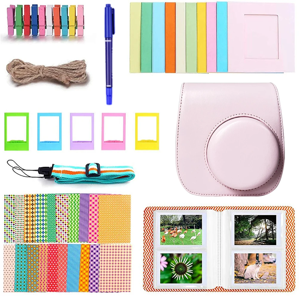 Comprar Bolsa de cámara instantánea 8 en 1 para Instax Mini 12/11/9/8, accesorios de diseño DIY, funda de cámara instantánea, marcos de película, pegatina de borde