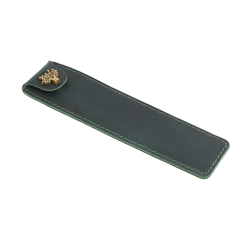 Comprar Bolsa de cuero genuino para bolígrafos, estuche para bolígrafos con botón a presión, Rollerball, verde, 2 unidades