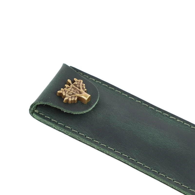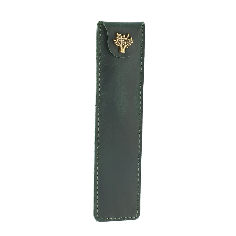 Comprar Bolsa de cuero genuino para bolígrafos, estuche para bolígrafos con botón a presión, Rollerball, verde, 2 unidades