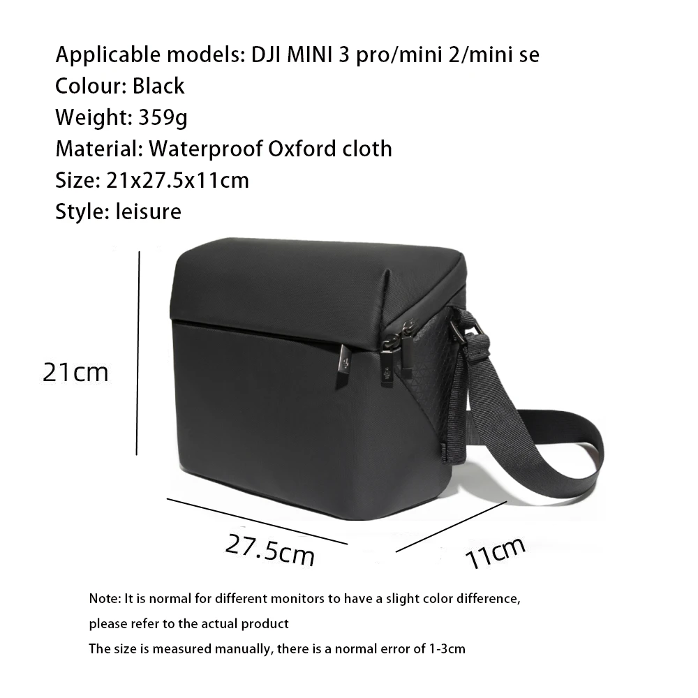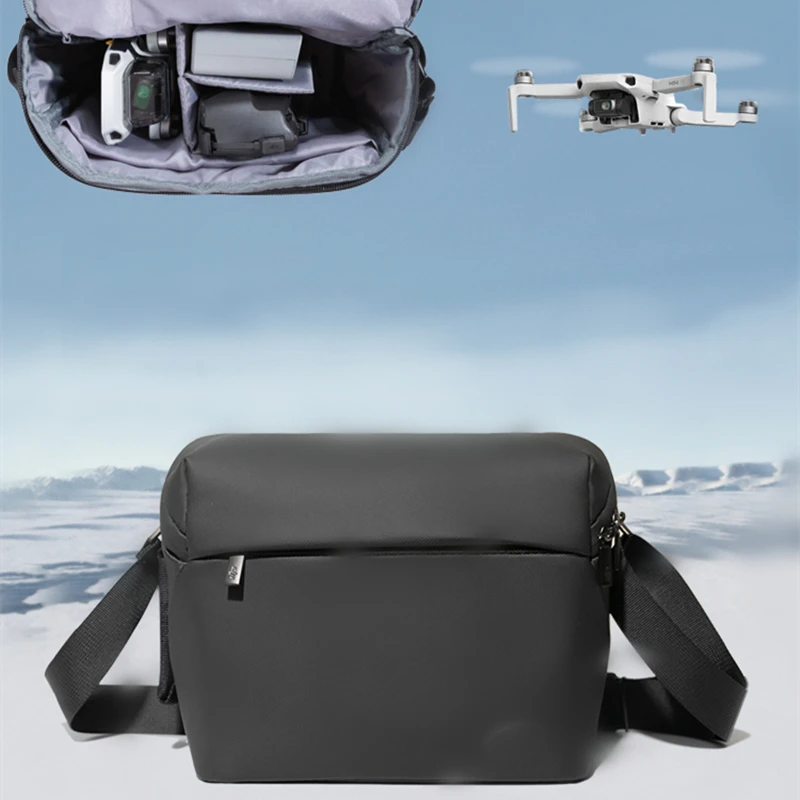 Gracias al diseño de partición interna, la bandolera puede acomodar Mavic Mini 2/Mini se/Mini3/Mini 3 pro, accesorios y otros equipos de fotografía profesionales.