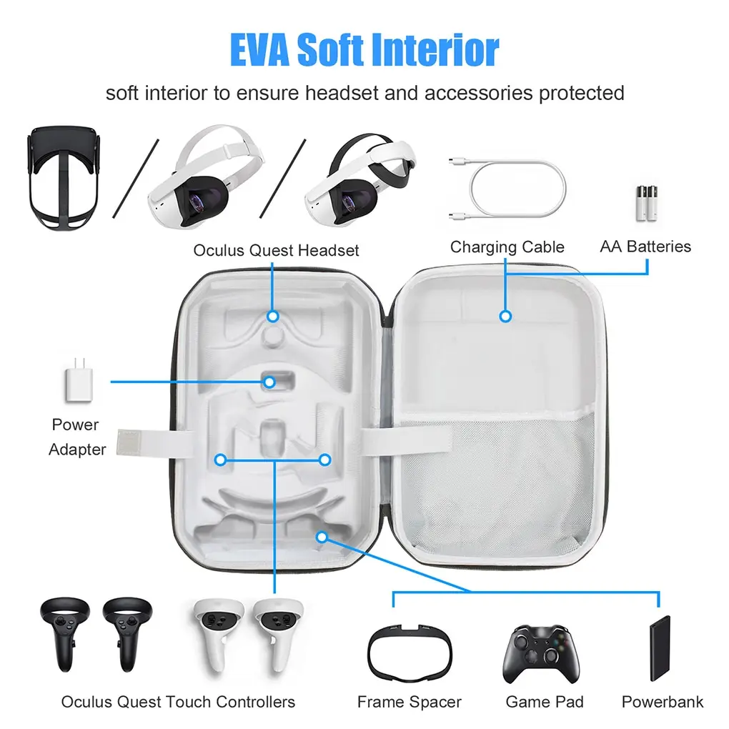 Comprar Bolsa impermeable para gafas de realidad virtual, caja de almacenamiento portátil ajustable, reemplazo para Oculus Quest 1 2