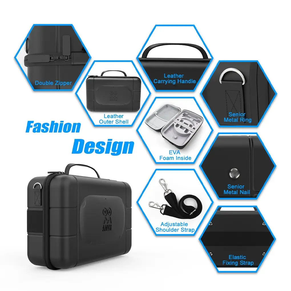 Este tipo de bolsa de gafas VR podría proteger sus gafas de caídas, choques, golpes y agua, puede usarla durante mucho tiempo sin romperse.Esta superficie de la bolsa de almacenamiento está hecha de material de cuero de alta calidad, y la parte interior está hecha de EVA y franela, evitando que su suministro se dañe.La correa es ajustable porque está diseñada con una hebilla de metal, la correa de cuero y la correa elástica son convenientes para almacenar y transportar cuando viaja.Esta bolsa de almacenamiento de gafas VR está equipada con una cremallera, puede abrir y cerrar la bolsa fácil y rápidamente, lo que es conveniente de usar.Este tipo de estuche de almacenamiento de gafas de realidad virtual está diseñado con una mano de obra exquisita, que está diseñada con ranuras que son convenientes para almacenar otros accesorios, como el controlador, el adaptador de corriente, el Banco de energía, la batería, cable USB y otros.Especificación:Material: EVA, PU, franela.Color: negro.Tamaño: 34*23*11,5 cm.Compatibilidad:Reemplazo para Oculus Quest 1/2.Nota:Debido a la diferencia de luz y pantalla, el color del artículo puede ser ligeramente diferente al de las imágenes.Permita una ligera desviación en los datos de medición y asegúrese de que no le importa antes de realizar el pedido.Paquete incluido:1 bolsa de almacenamiento.1 correa ajustable.1x almohadilla protectora de lente.1 Correa.