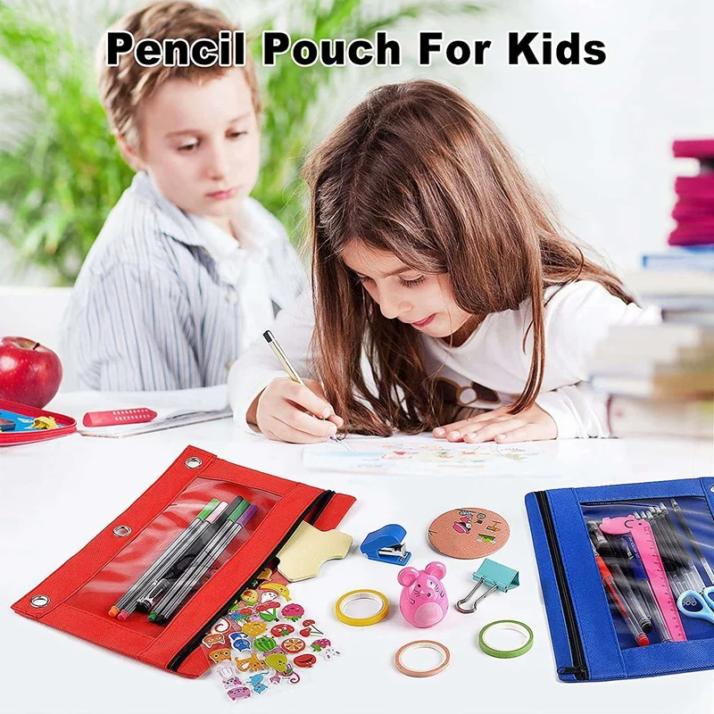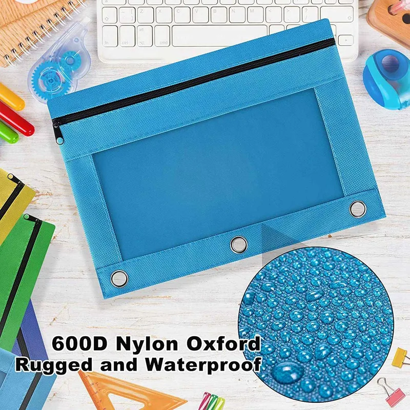 Paquete de 6 coloridos 3 anillos con cremallera para lápices Estuche de lápices de tela Estuche de carpeta resistente AU duradero con ventana transparente Adecuado