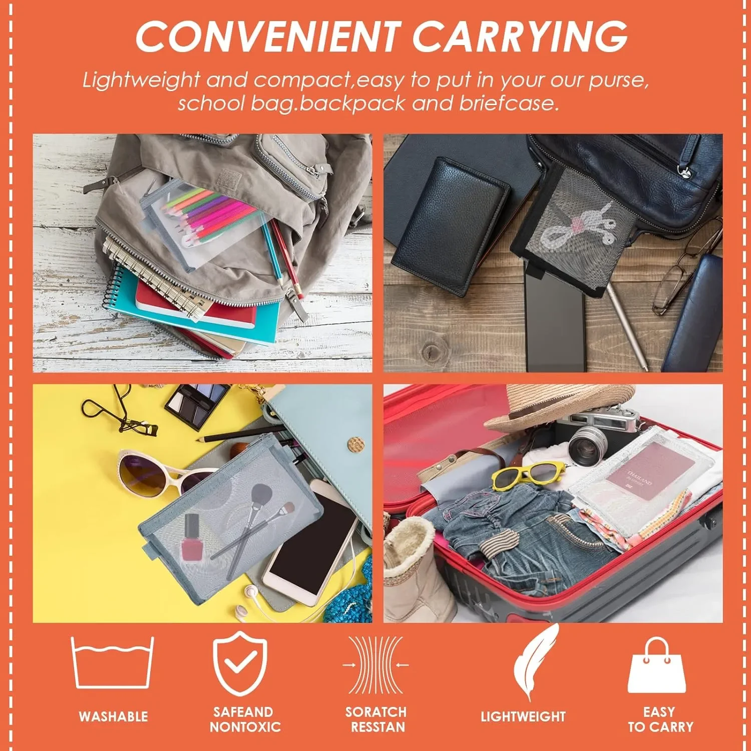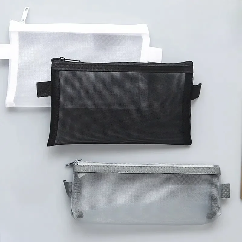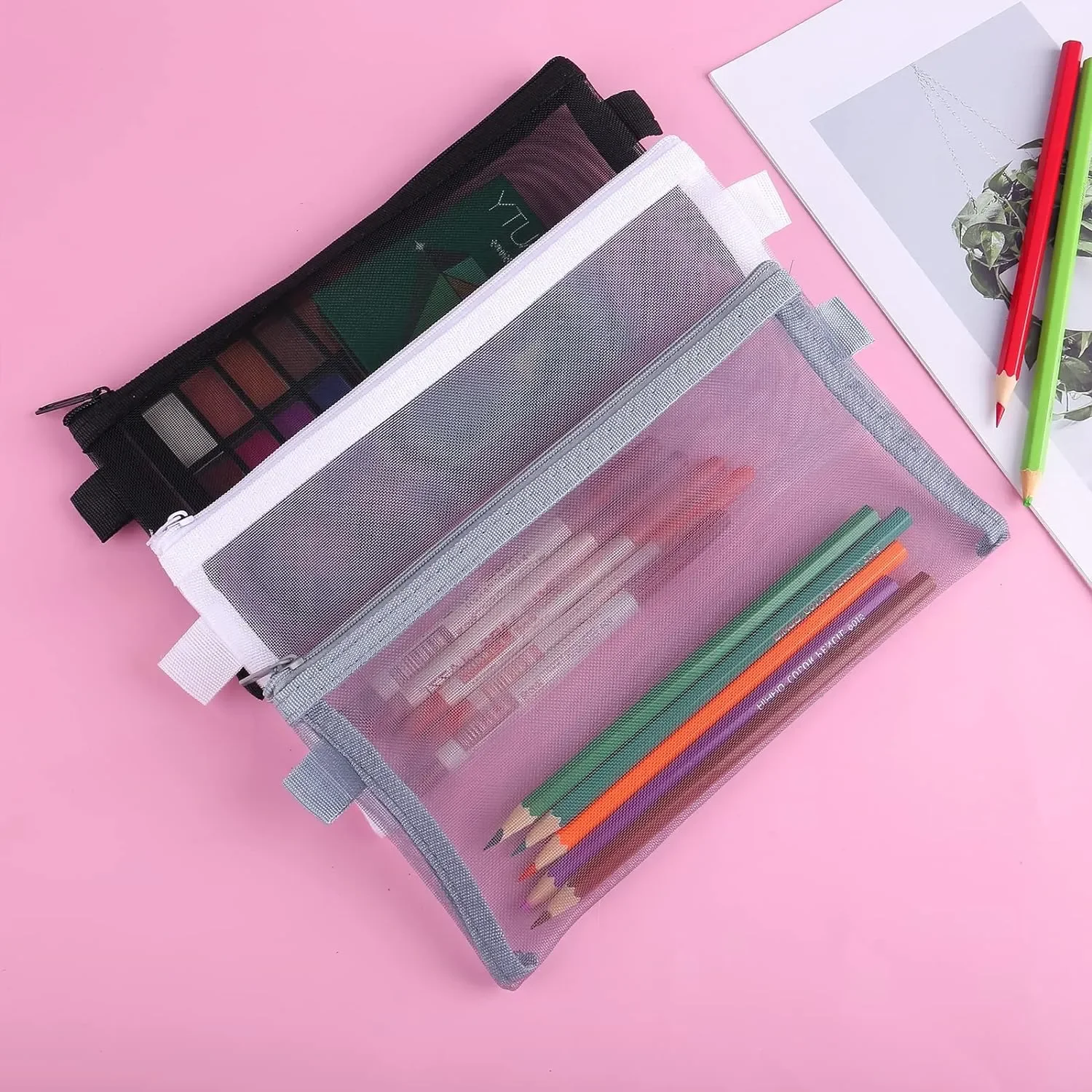 Comprar Bolsa de lápices de malla transparente, bolsas de maquillaje, bolsa de nailon para bolígrafos con cremallera, estuche para lápices, organizador de almacenamiento de papelería, accesorios de viaje