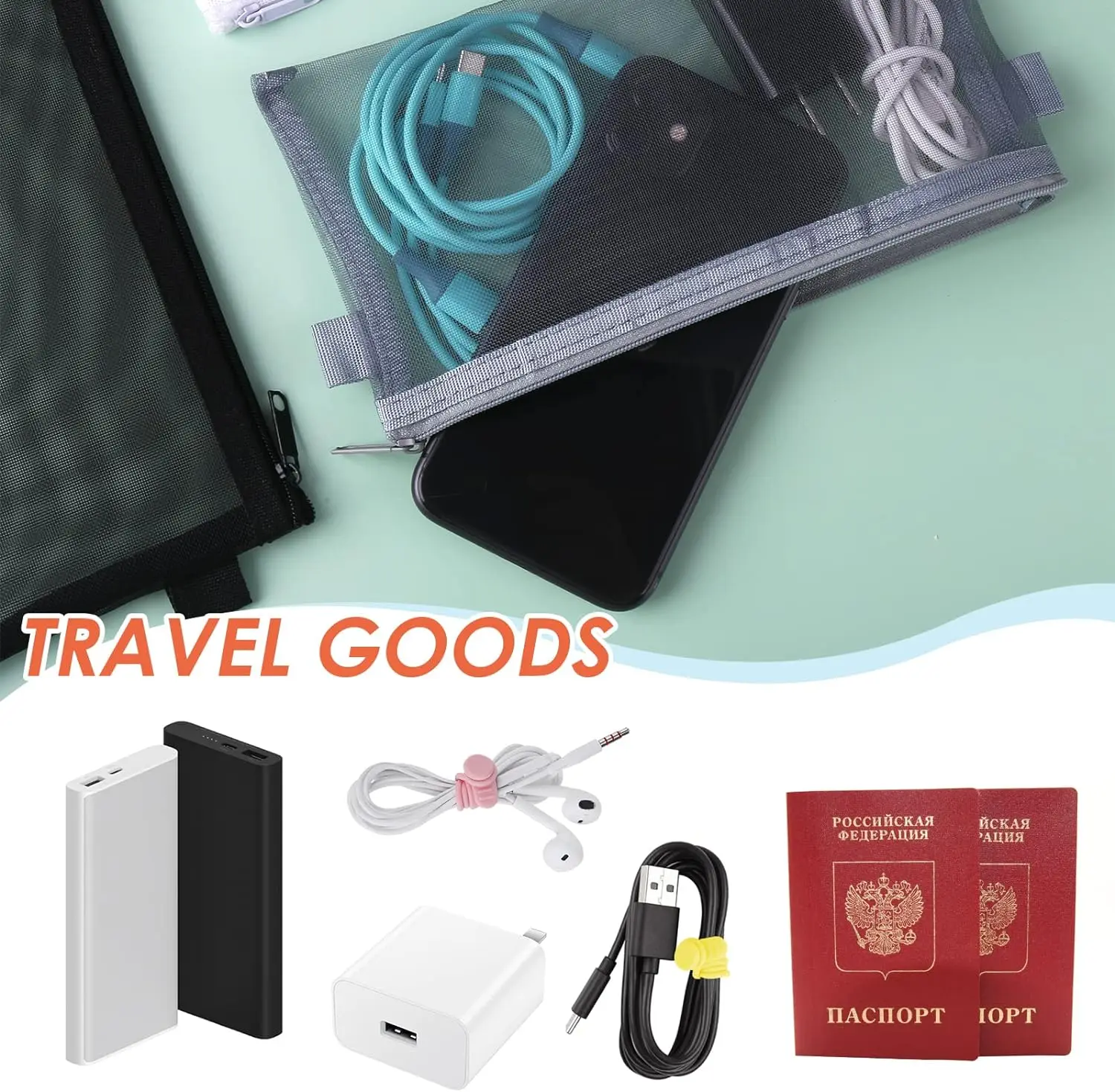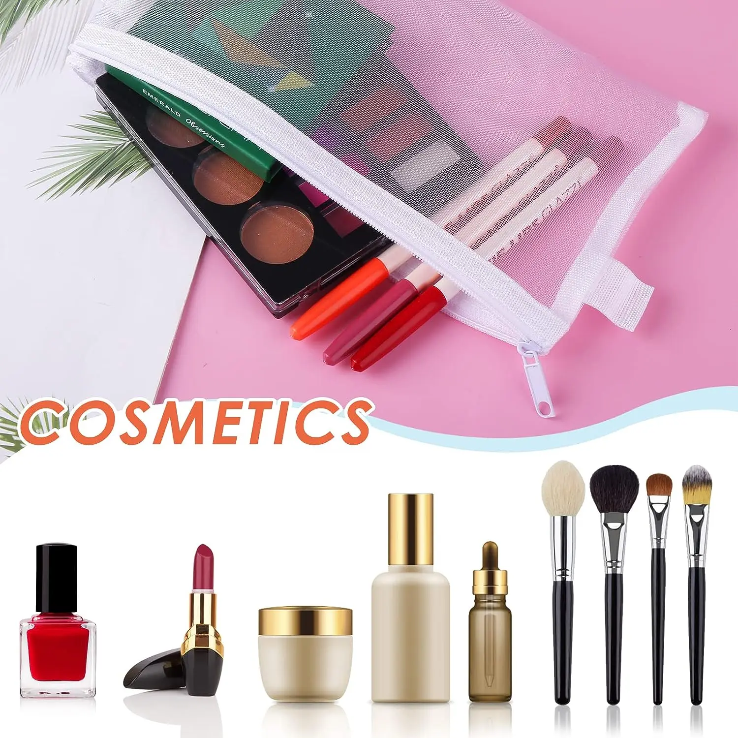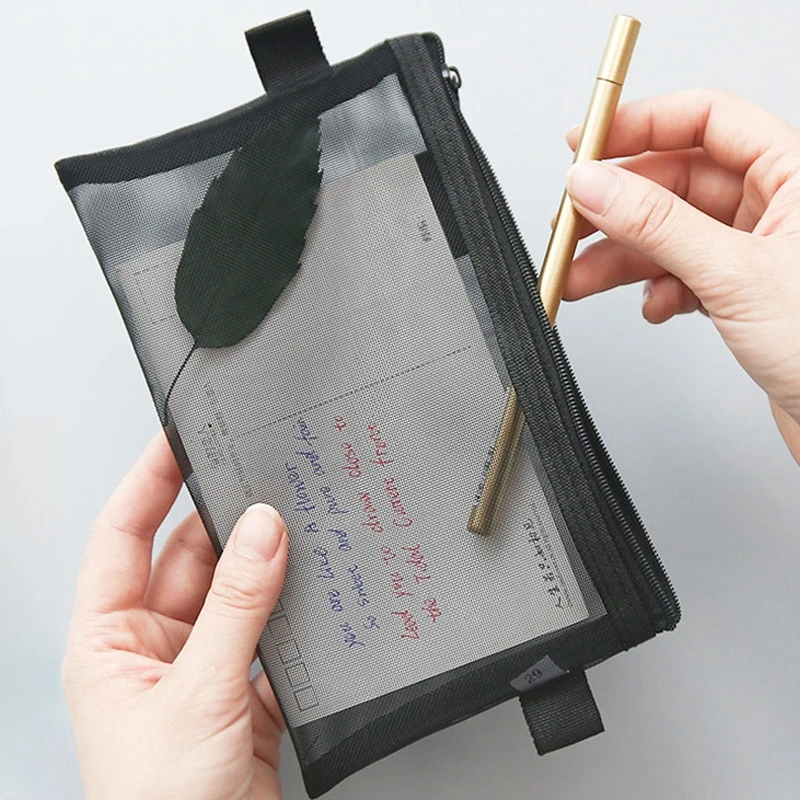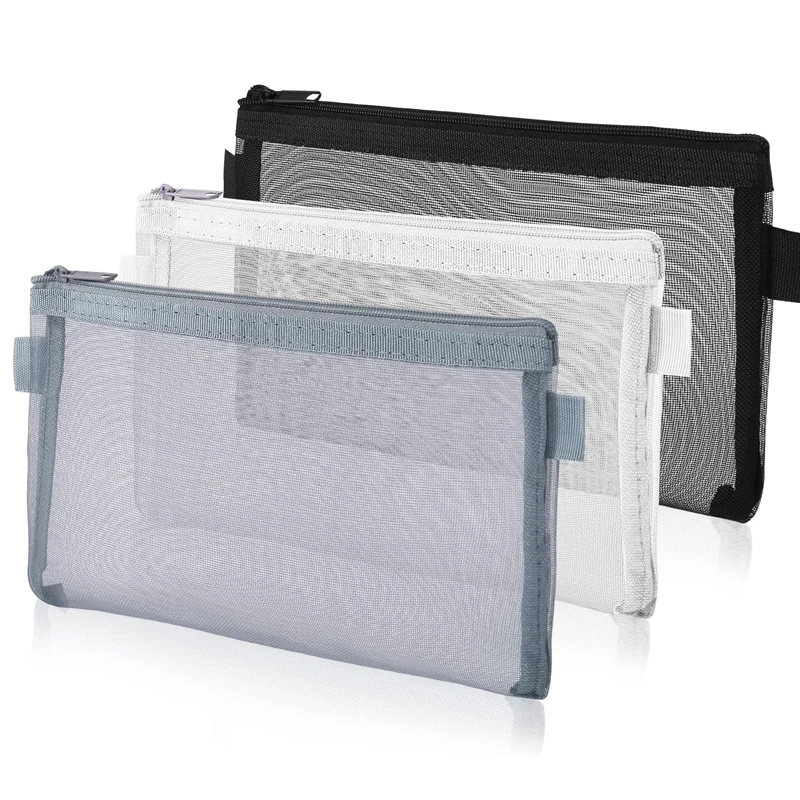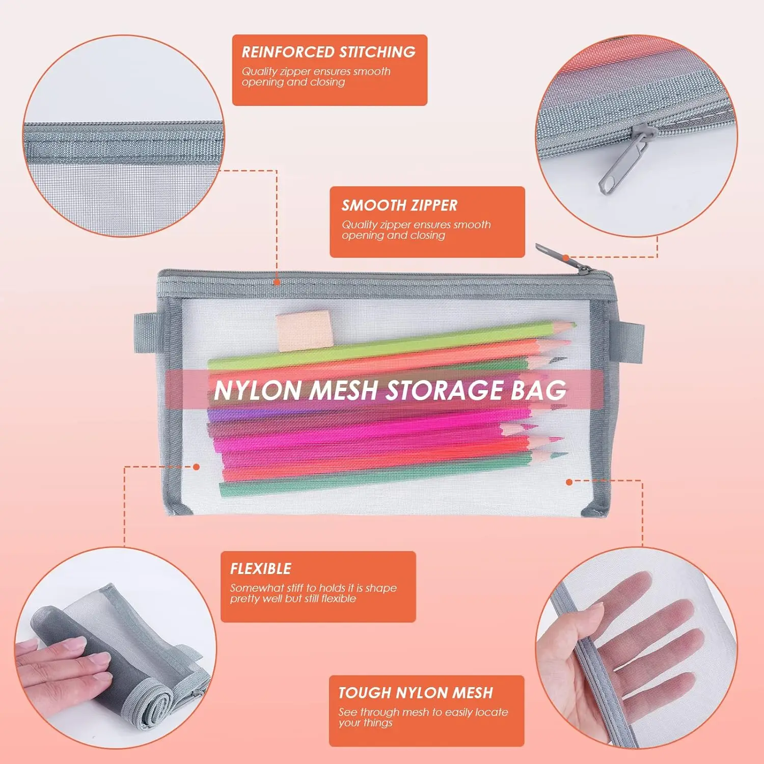 Comprar Bolsa de lápices de malla transparente, bolsas de maquillaje, bolsa de nailon para bolígrafos con cremallera, estuche para lápices, organizador de almacenamiento de papelería, accesorios de viaje