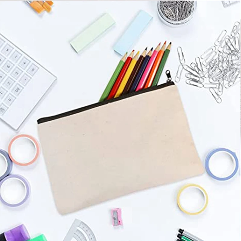 Comprar Bolsa de lápices para manualidades, 10 piezas, con cremallera, de lona, en blanco, para maquillaje, multifuncional
