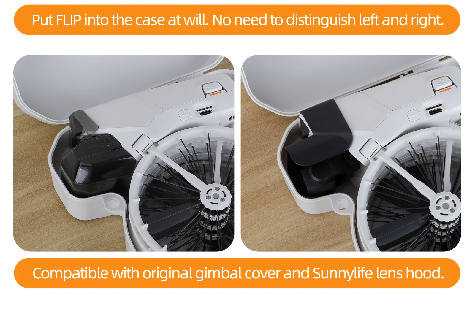 A prueba de golpes y polvo: fabricado con material plástico de alta calidad, ofrece una excelente absorción de impactos, resistiendo eficazmente los golpes diarios y la intrusión de polvo, brindando una protección integral para su dron FLIP durante todo su uso.