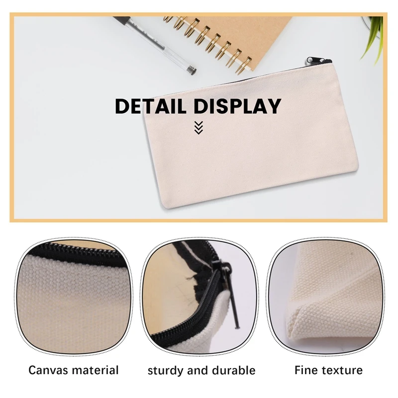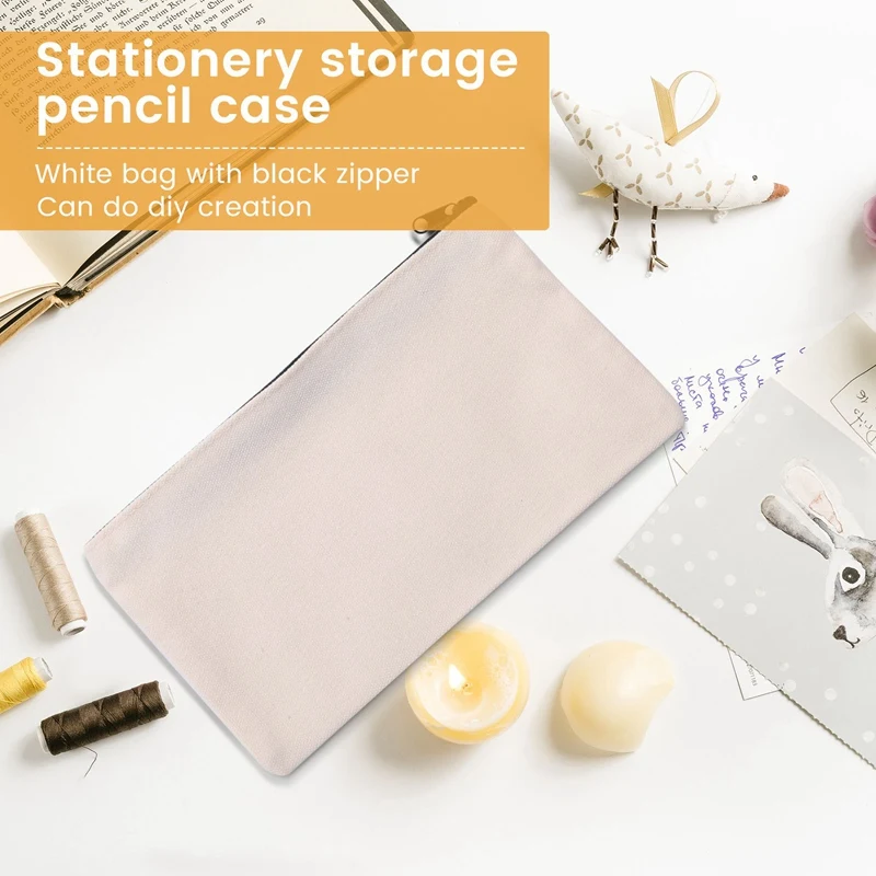 Bolsas de lona con cremallera, bolsa de lona para lápices, bolsas de maquillaje de lona, estuche de lona en blanco, bolsas para manualidades DIY, bolsa de cosméticos, bolsa de maquillaje