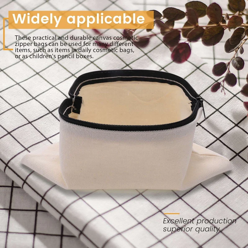 Ampliamente aplicable: estas prácticas y duraderas bolsas cosméticas de lona con cremallera se pueden aplicar para muchos objetos diferentes, como artículos de su kit de maquillaje diario o simplemente usarlos como estuche de lápices para sus hijos.