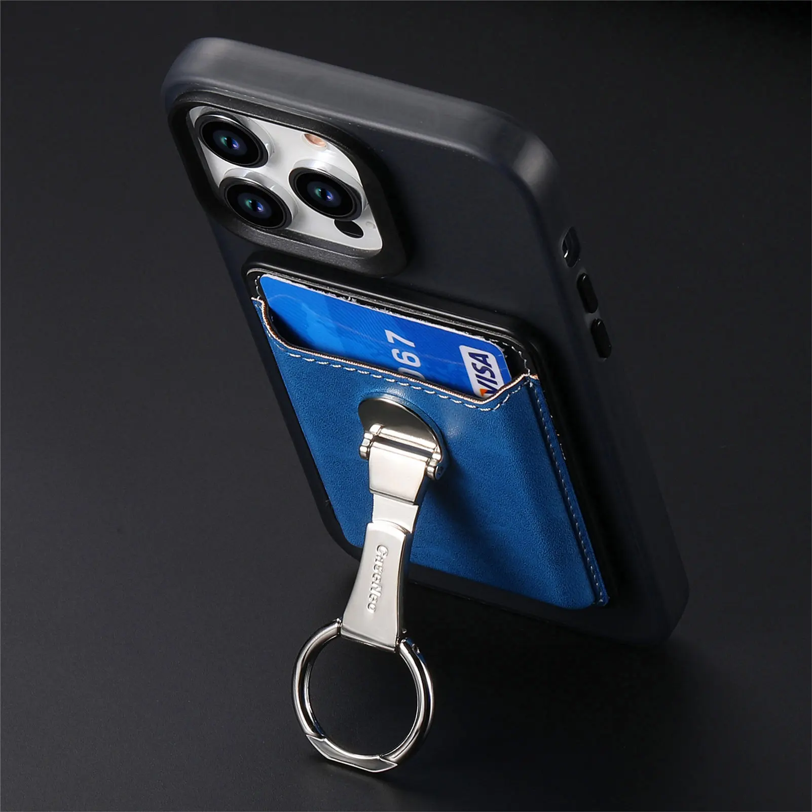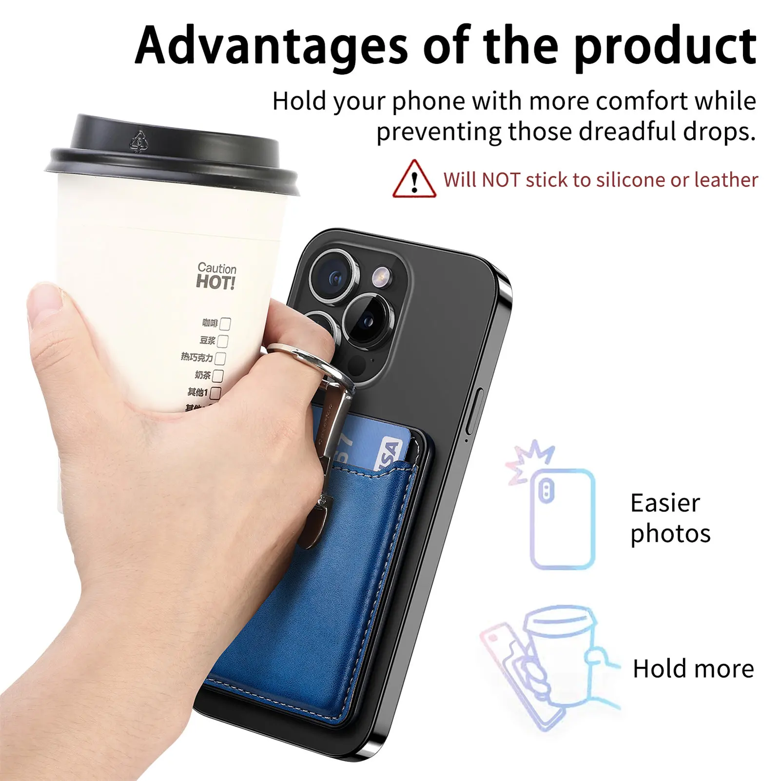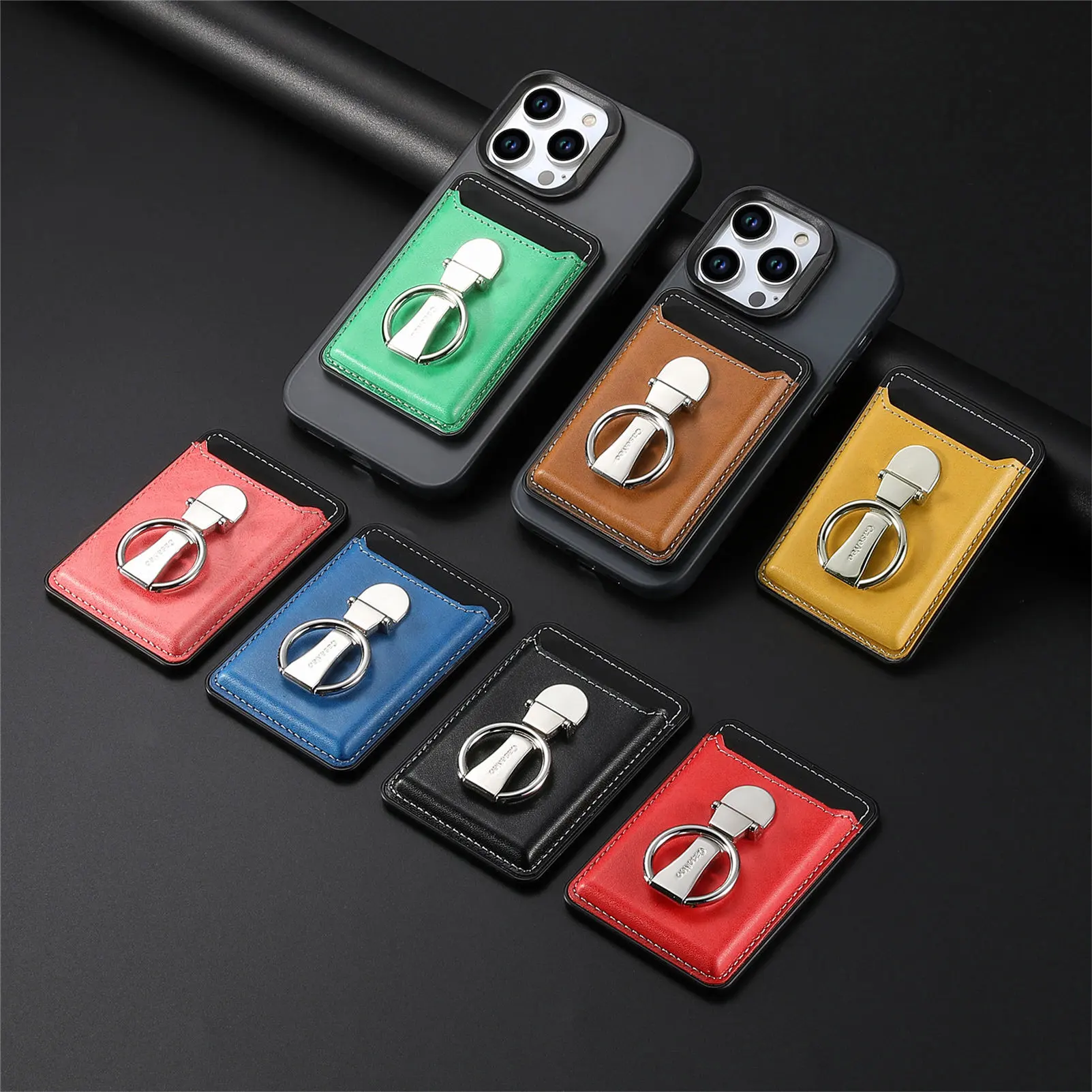 Bolsa magnética para tarjetas de atracción fuerte para iPhone 15 Pro Max 14 13 12, billetera con ranuras para tarjetas, soporte de anillo plegable, bolsa de soporte para Magsafe
