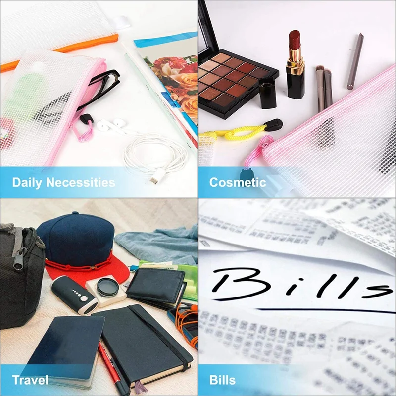 Bolsa de malla con cremallera, bolsas de almacenamiento de archivos impermeables, multiusos para organizar suministros de oficina bolsas de cosméticos