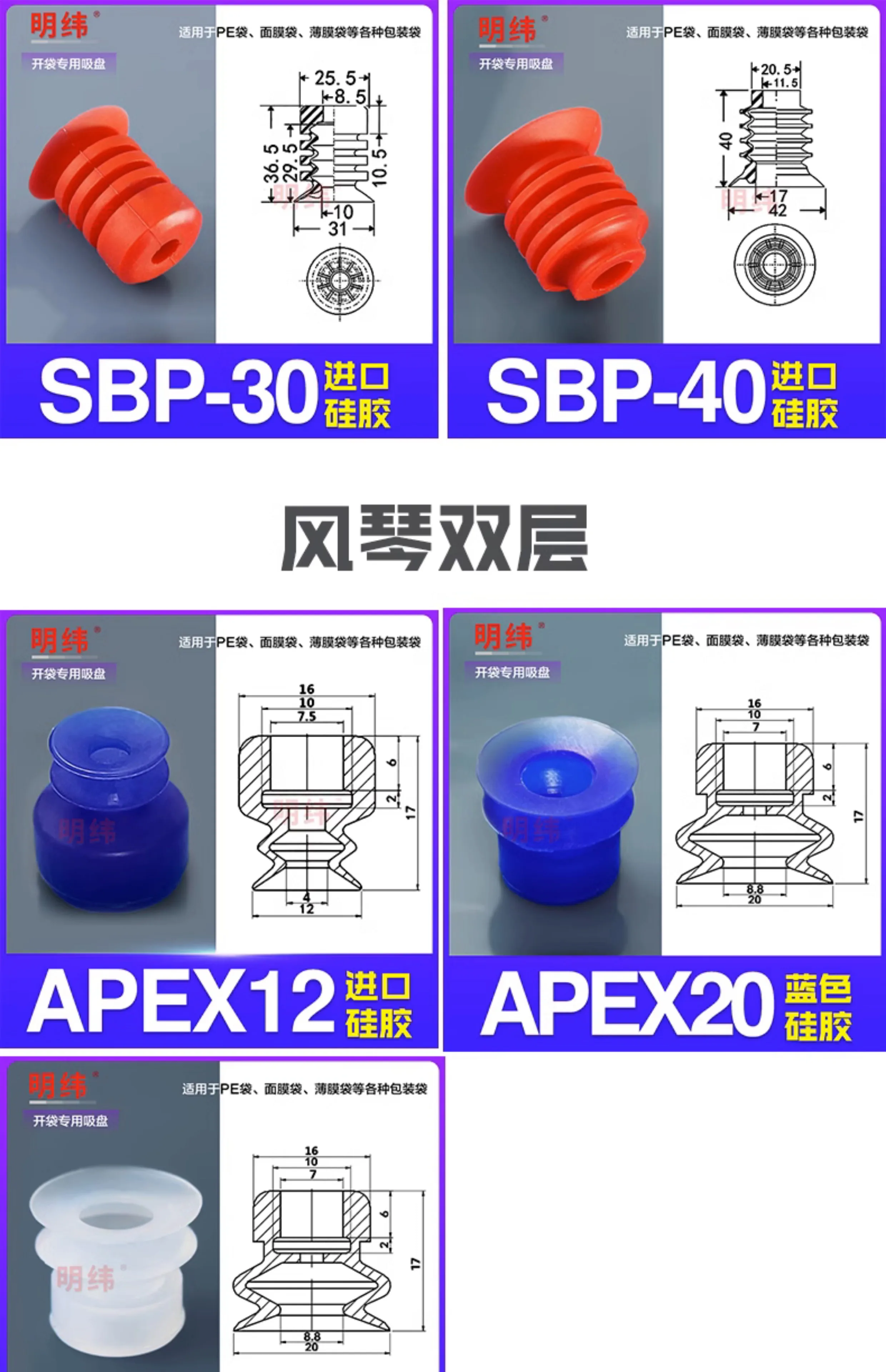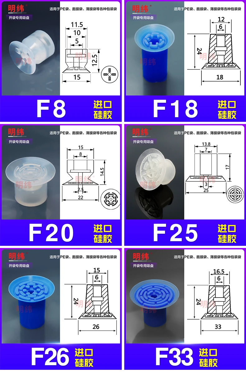 Es adecuado para diversas películas delgadas (como películas de PE) y apertura de bolsas de diversas máquinas envasadoras. Funciona bien y lo compraremos nuevamente la próxima vez.