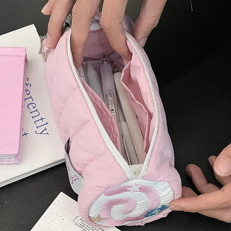Comprar Bolsa de maquillaje multifuncional, estuches de lápices de gran capacidad para mujeres y niñas, bolsa de almacenamiento de dibujos animados lindos, papelería, suministros escolares