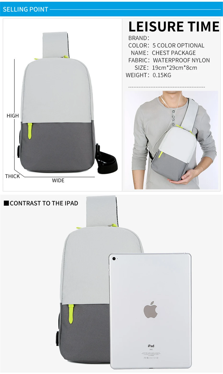 Comprar Bolsa para ordenador portátil de 10 pulgadas, bandolera de un solo hombro Unisex, bolsa de pecho de viaje para iPad, funda impermeable
