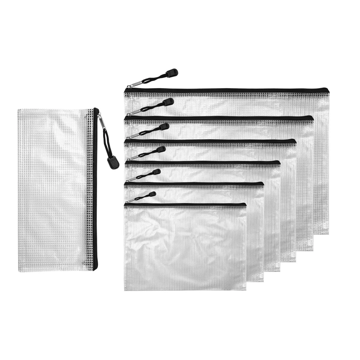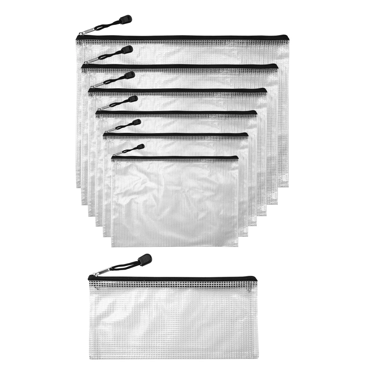Comprar Bolsa organizadora de punto de cruz con cremallera para escuela, suministros de oficina, almacenamiento, 7 tamaños, 21 paquetes