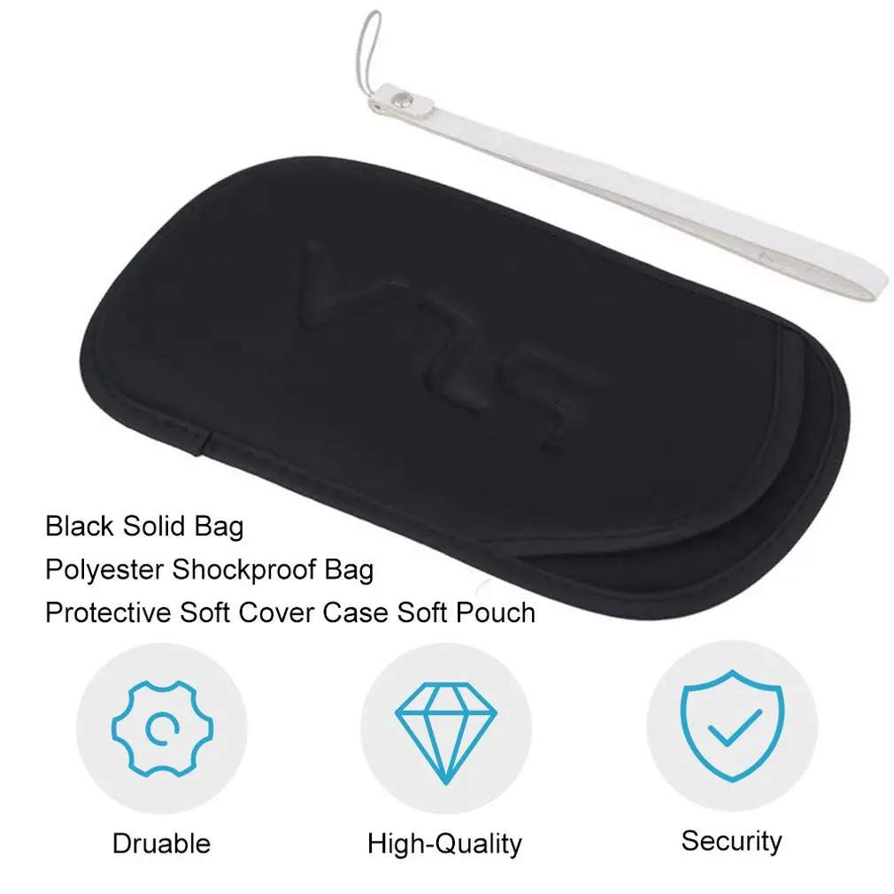 Bolsa negra sólida unisex, bolsa de poliéster a prueba de golpes, funda protectora suave con botón de bloqueo para PS Vita PSV