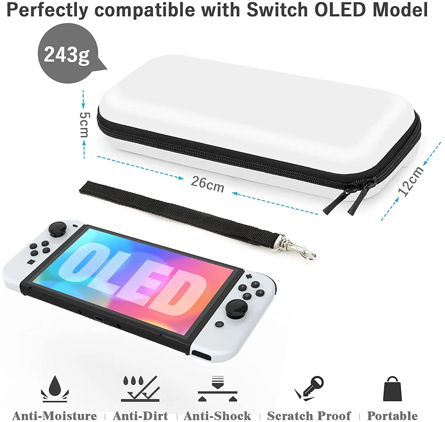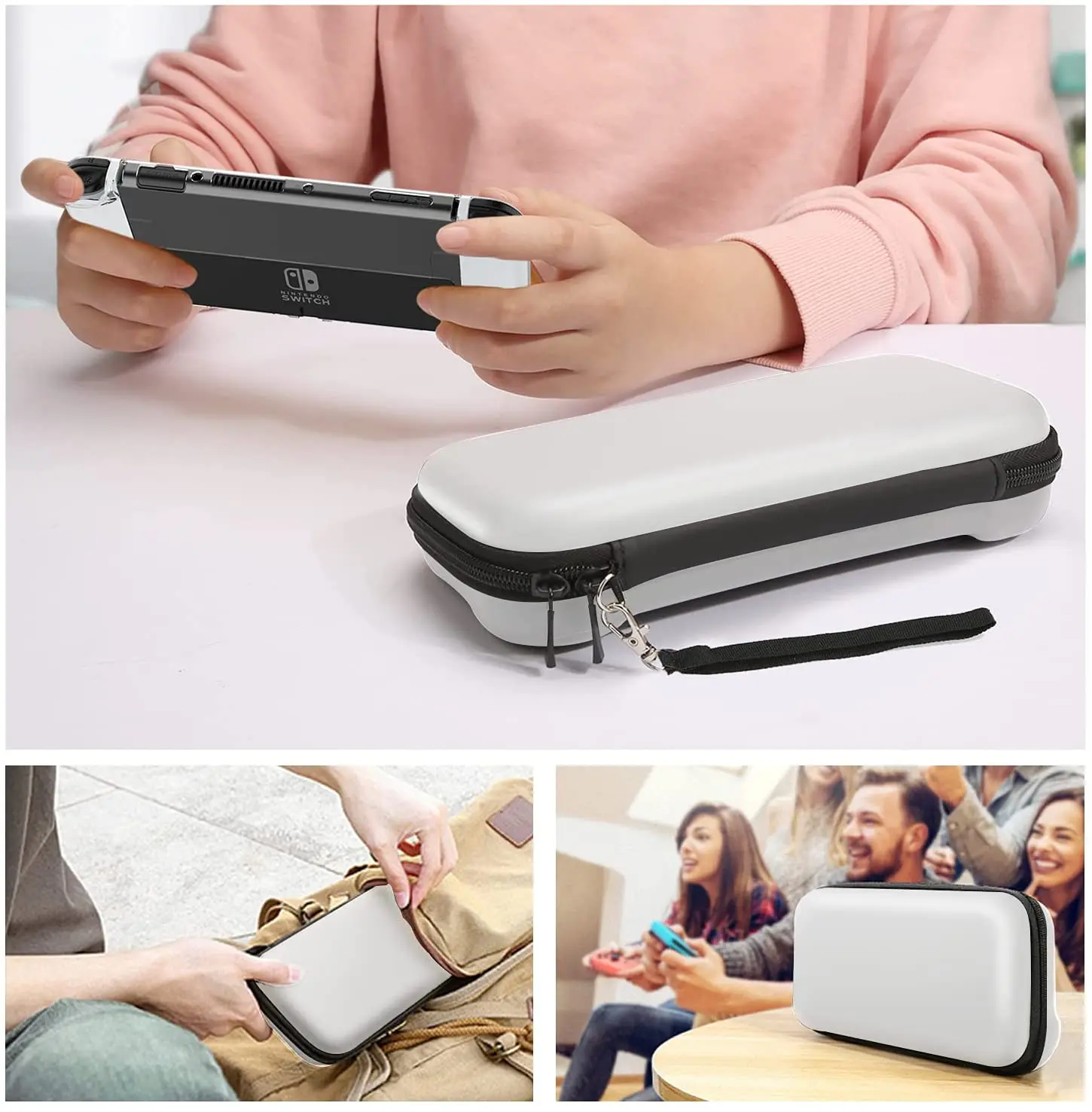 1.Ajuste perfecto y alta calidad: con tela texturizada duradera Carcasa de EVA Switch e interior de microfibra suave, consola OLED Nintendo Switch y estuche de transporte para accesorios que protege eficazmente su dispositivo contra rasguños y caídas.8 pequeños bolsillos para tarjetas de juego y un bolsillo interior separado brindan espacio de almacenamiento seguro para consolas, cables, estuche para tarjetas de juego y otros accesorios más pequeños.