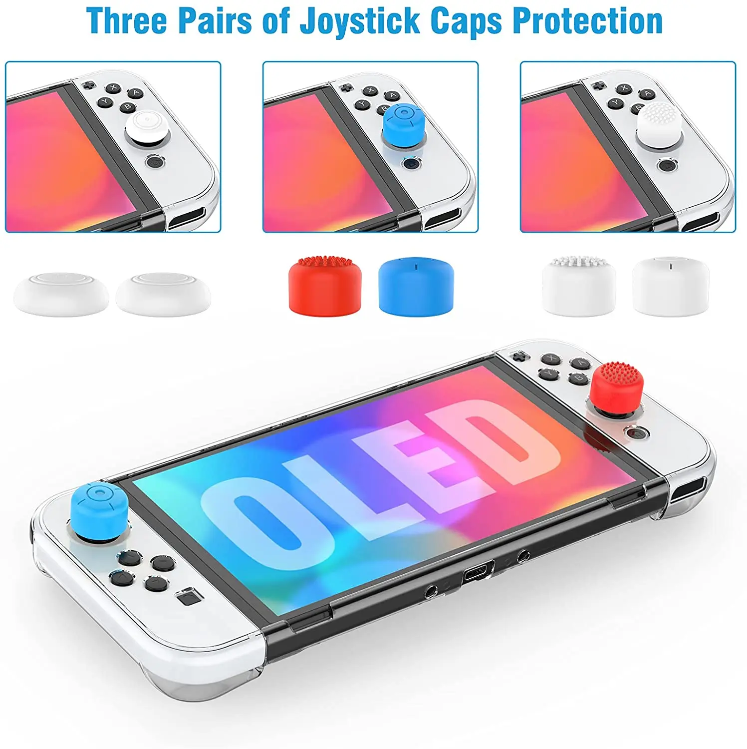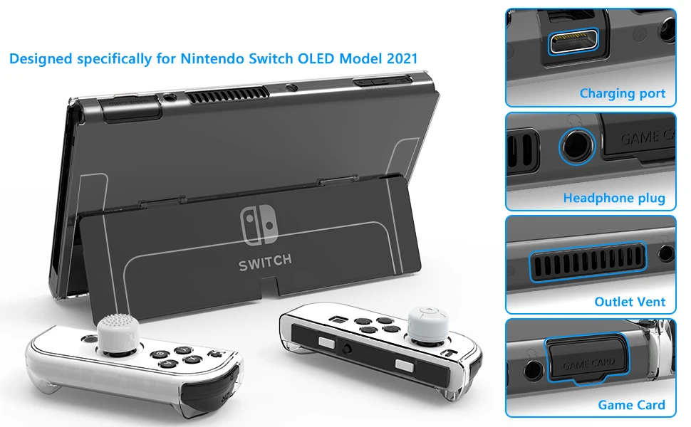 2.Cómoda y precisa: la funda transparente para modelo OLED de Nintendo Switch está construida con una combinación híbrida de TPU suave, que absorbe los golpes y material resistente a los daños, un bolsillo moldeado para la consola y correas elásticas sujetan la consola firmemente en su lugar, es fácil de poner y quitar. apagado, te brinda sensaciones cómodas al jugar en modo portátil.