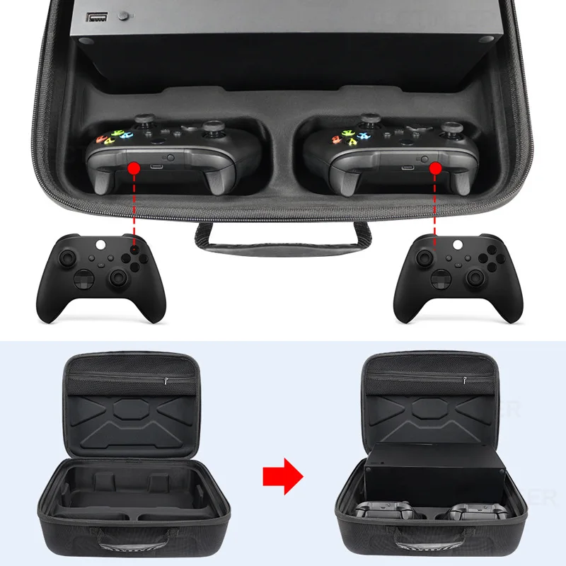 En comparación con otros estuches del mercado, nuestro estuche es mucho más portátil.Es un estuche perfecto para la serie Xbox como solución de viaje.¡Puedes llevar tu consola de juegos a cualquier lugar para divertirte!