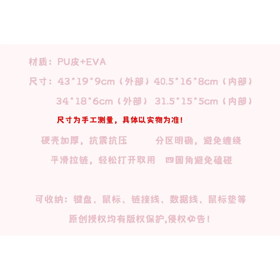 Bolsa para teclado de gato conejo rosa, bolsa de almacenamiento personalizada de PU EVA a prueba de polvo para teclado, accesorios para teclado mecánico de oficina y juegos