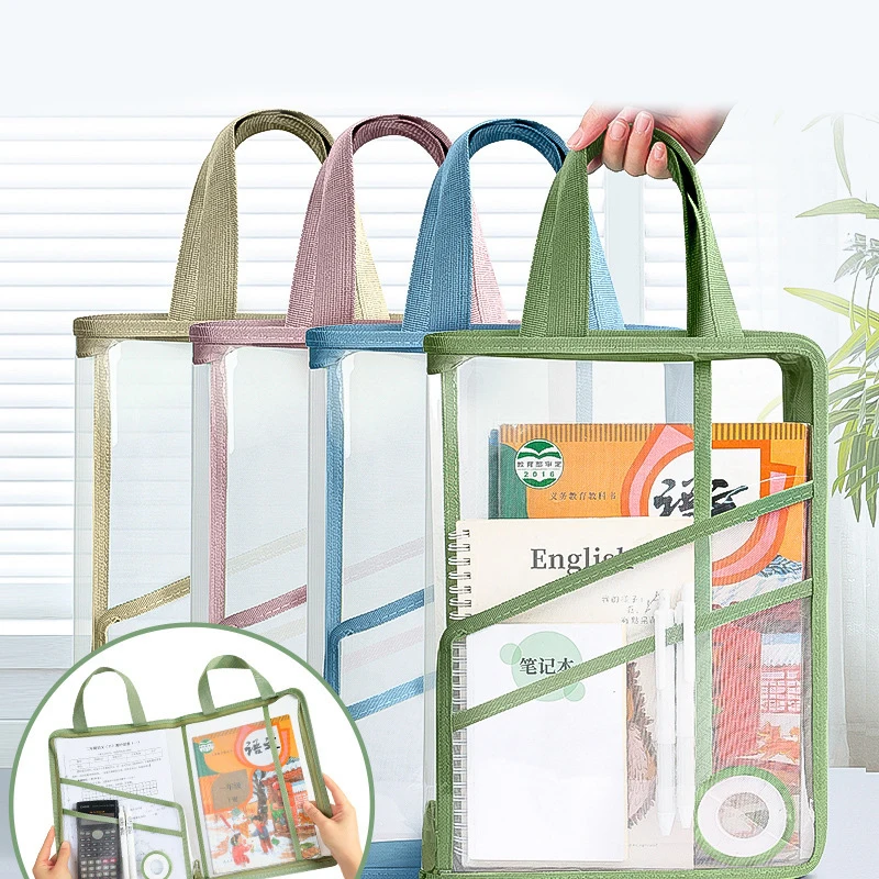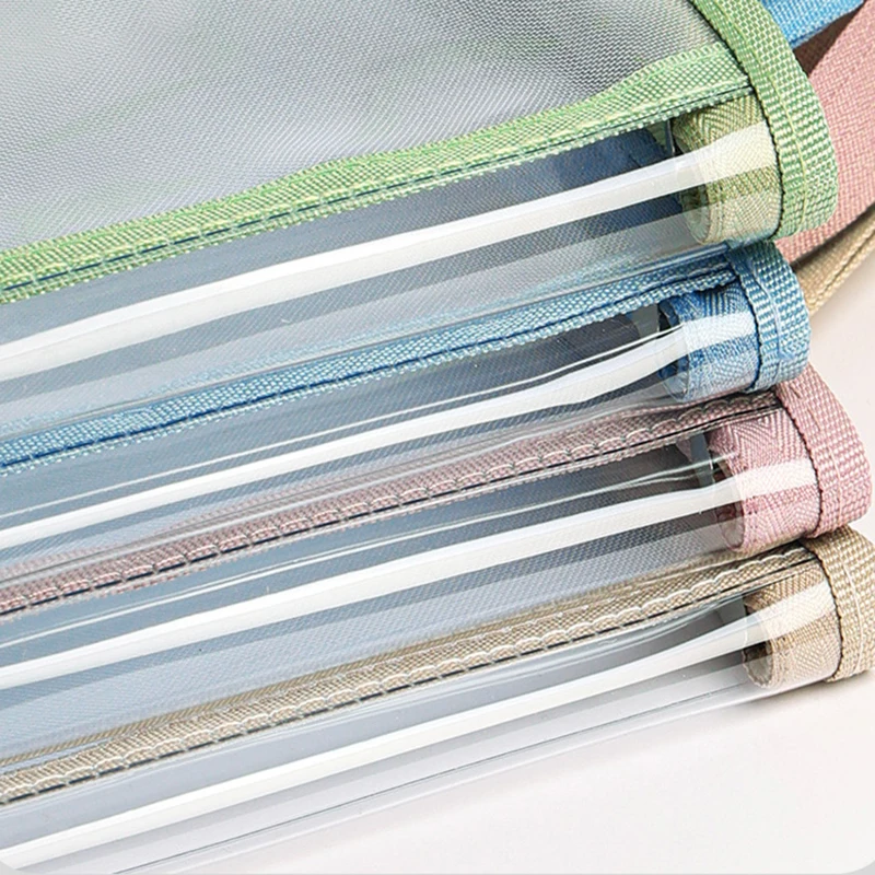 Comprar Bolsa transparente para documentos, carpeta de almacenamiento de papelería, bolsa de malla con cremallera, carpetas de archivos con cremallera, suministros escolares y de oficina estacionarios