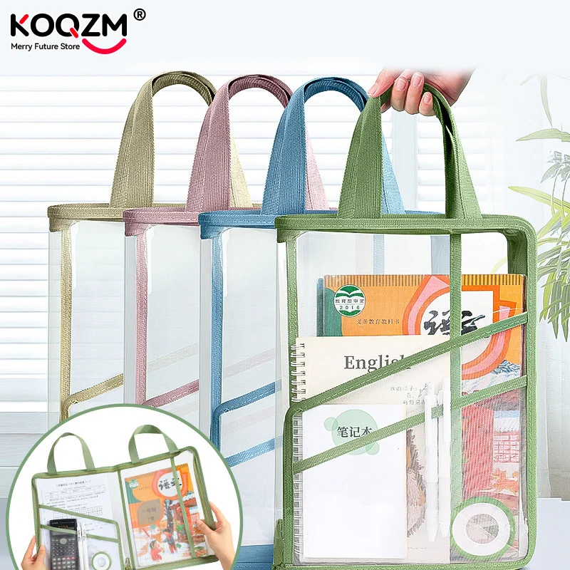 Comprar Bolsa transparente para documentos, carpeta de almacenamiento de papelería, bolsa de malla con cremallera, carpetas de archivos con cremallera, suministros escolares y de oficina estacionarios