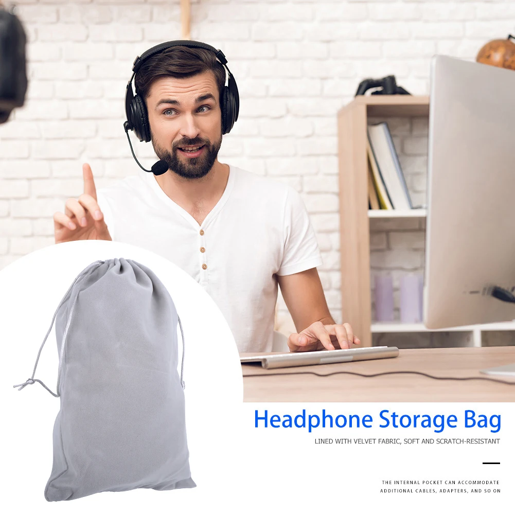 Bolsa de transporte de auriculares de tela de terciopelo, bolsa de transporte de viaje antiarañazos, funda protectora para auriculares pequeños y accesorios pequeños