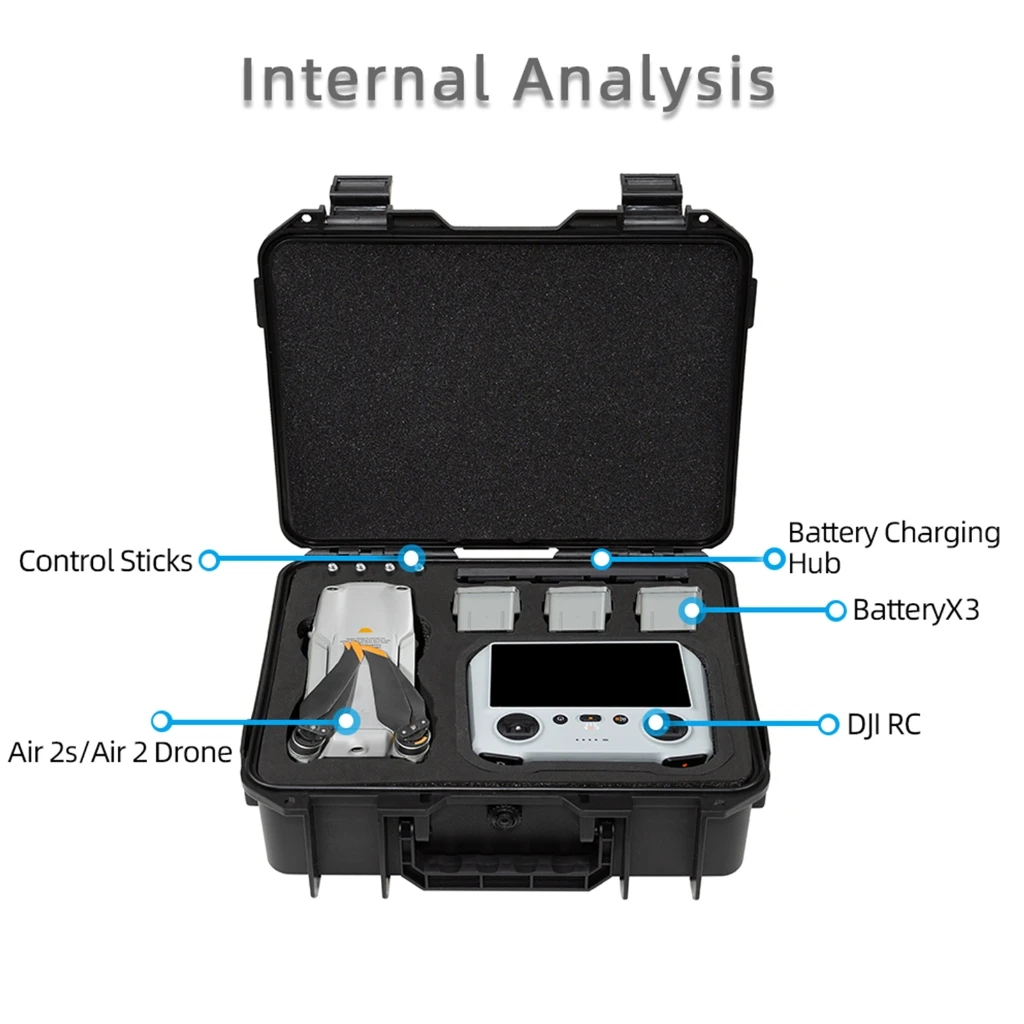 Especificaciones: Material: ABS Color negro Tamaño: aproximadamente 33x27x11,5 cm/1,08x0,89x0,38 pulgadas Adecuado para vuelo Air 2S Air 2