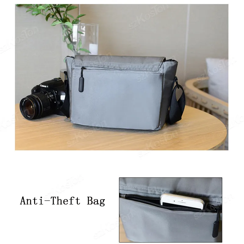 El bolso bandolera para cámara Szkoston está hecho de tela impermeable, resistente a los arañazos y al desgaste, con compartimentos flexibles para su equipo y accesorios de fotografía profesional. Esta bolsa de eslinga para cámara utiliza algodón EPE a prueba de golpes de 10mm de alta densidad y proporciona una protección efectiva integral para su equipo contra daños. El compartimento extraíble es práctico no solo para la lente de la cámara profesional EVA, sino también para los desplazamientos diarios y la Fotografía Profesional.