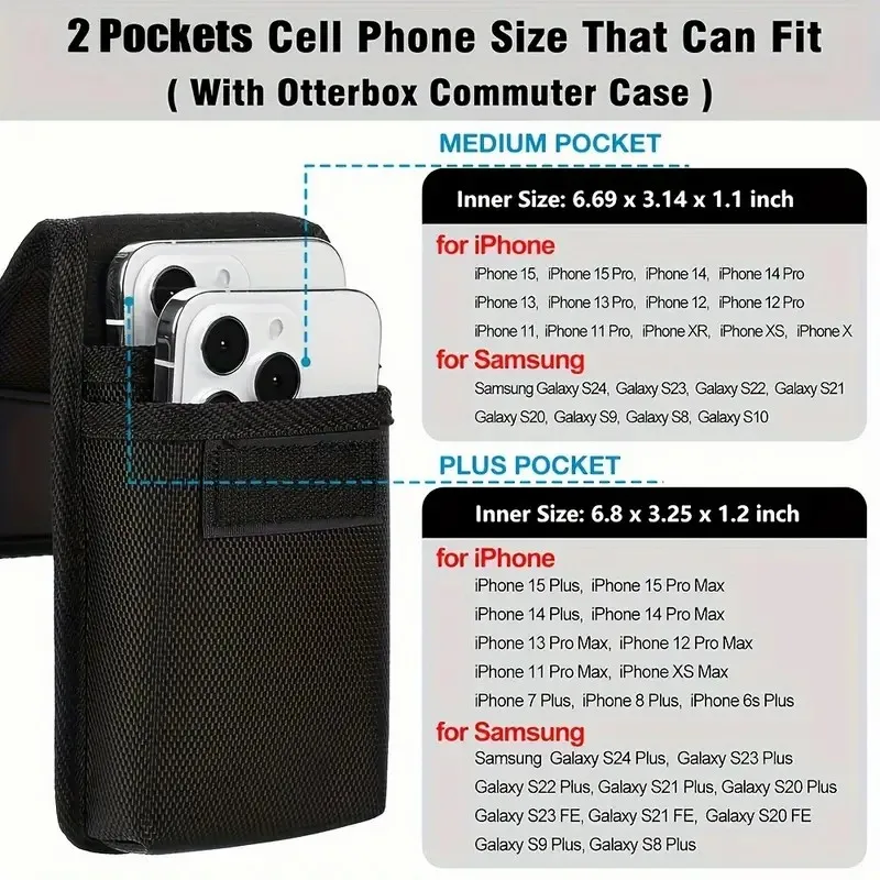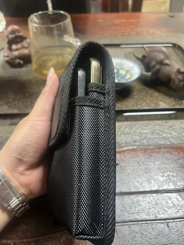 Paquete de cinturón de tela Oxford doble multifuncional iPhone16Promax, paquete de cinturón con tapa, funda protectora para teléfono móvil Apple Samsung Huawei, funda para colgar