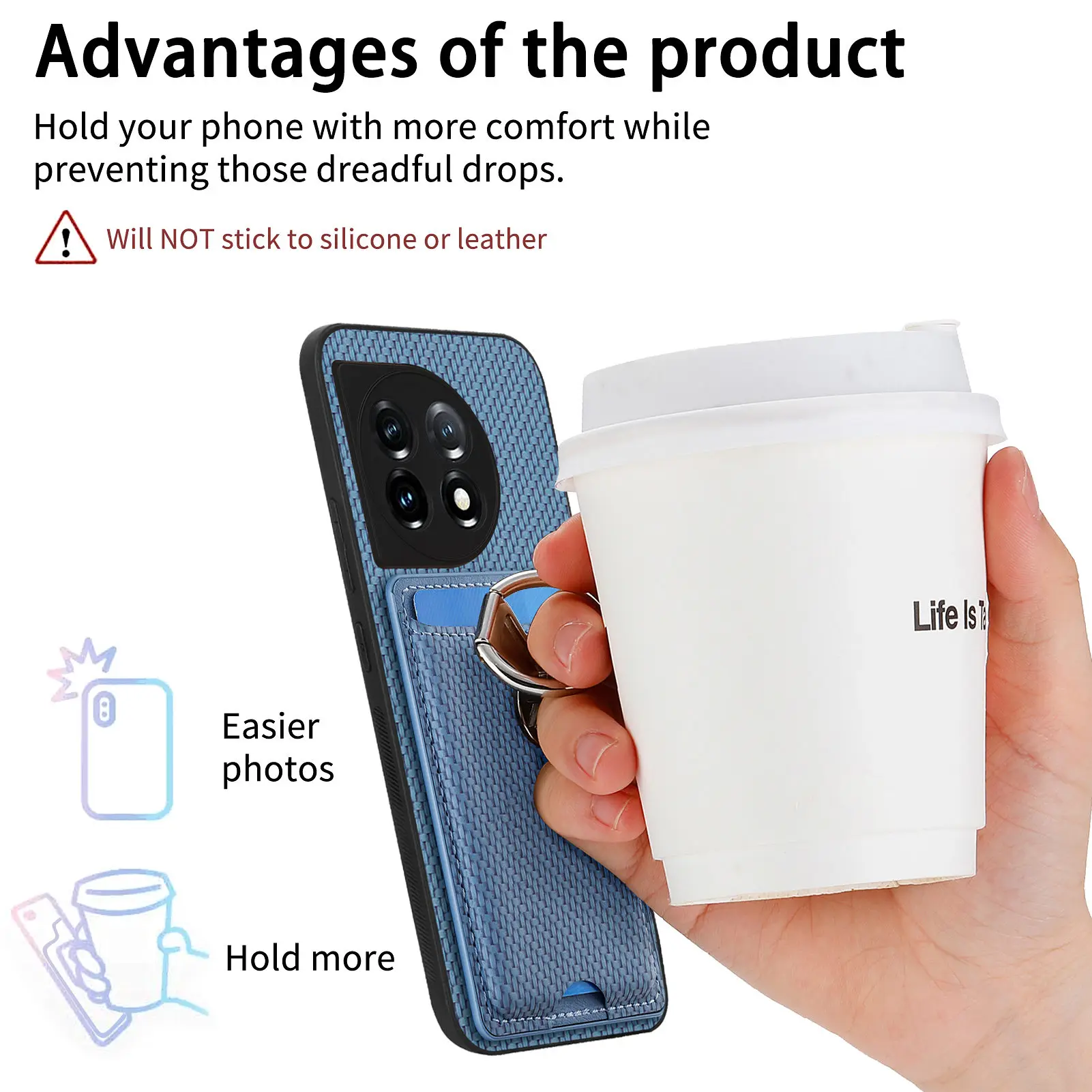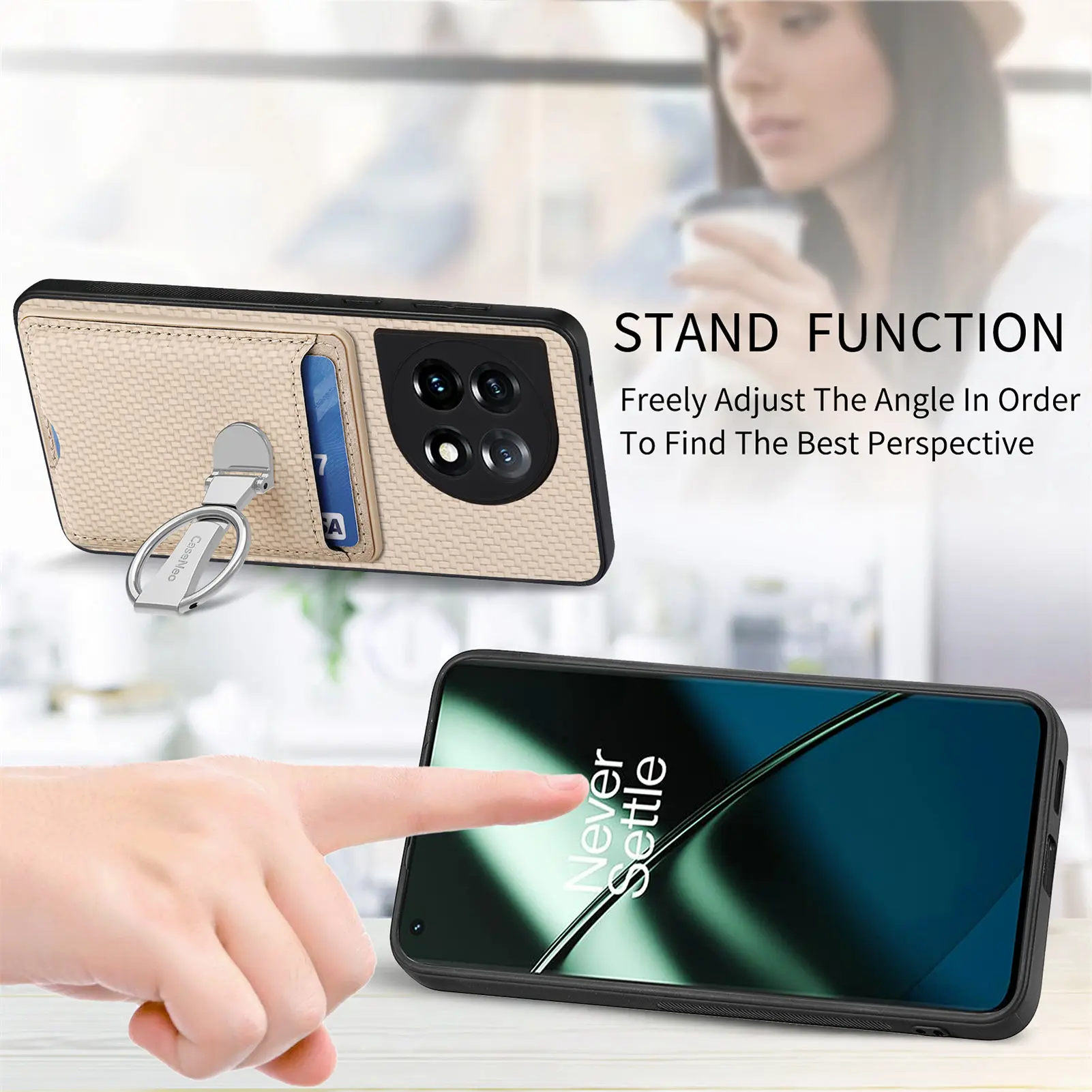 Comprar Bolsa Vertical para tarjetas, funda de fibra de carbono para teléfono OnePlus Nord CE3 10T 11, soporte de anillo plegable, bolsillo ultrafino